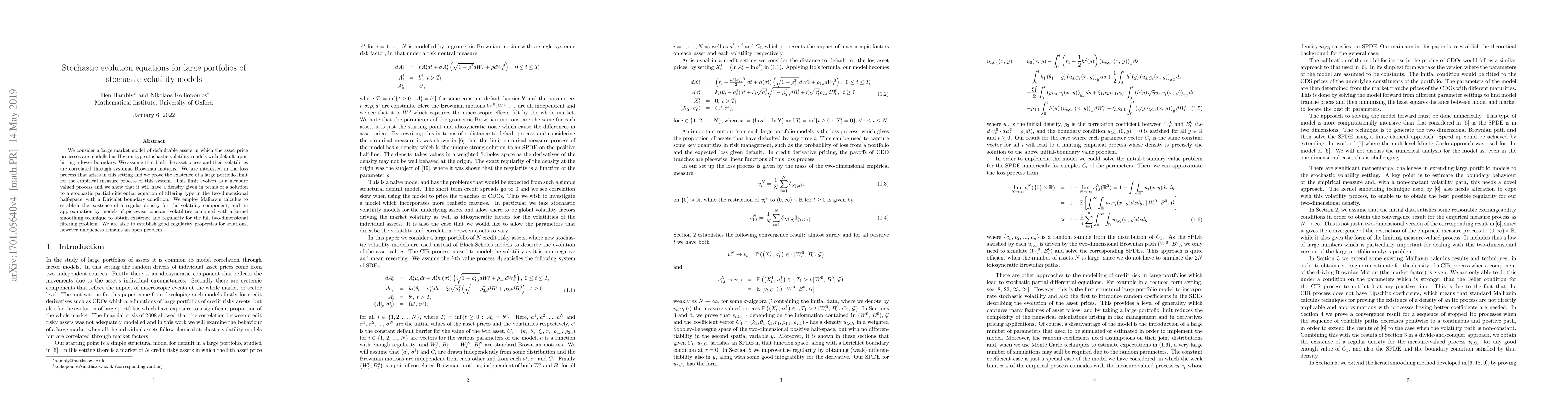 Researchers develop a model for large portfolios of assets with correlated stochastic volatility models, proving the existence of a limit for the loss process as a measure-valued process. The model features a stochastic partial differential equation for filtering, which can be approximated by simpler models.