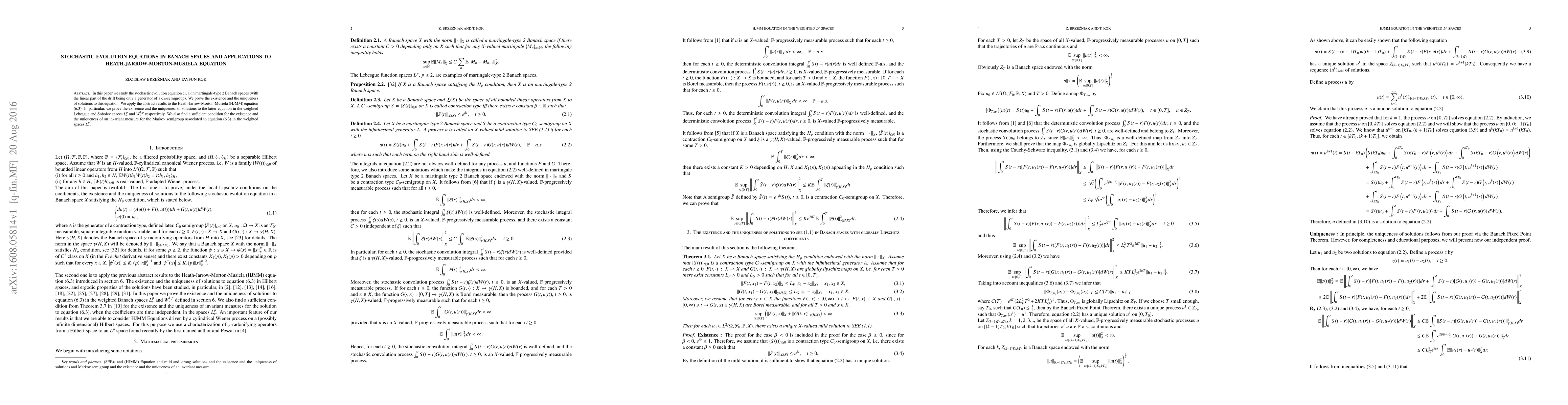 This paper investigates stochastic evolution equations in martingale-type 2 Banach spaces, proving existence and uniqueness of solutions. It applies these results to the Heath-Jarrow-Morton-Musiela equation, establishing existence and uniqueness in weighted Lebesgue and Sobolev spaces, and finding conditions for an invariant measure for the associated Markov semigroup.