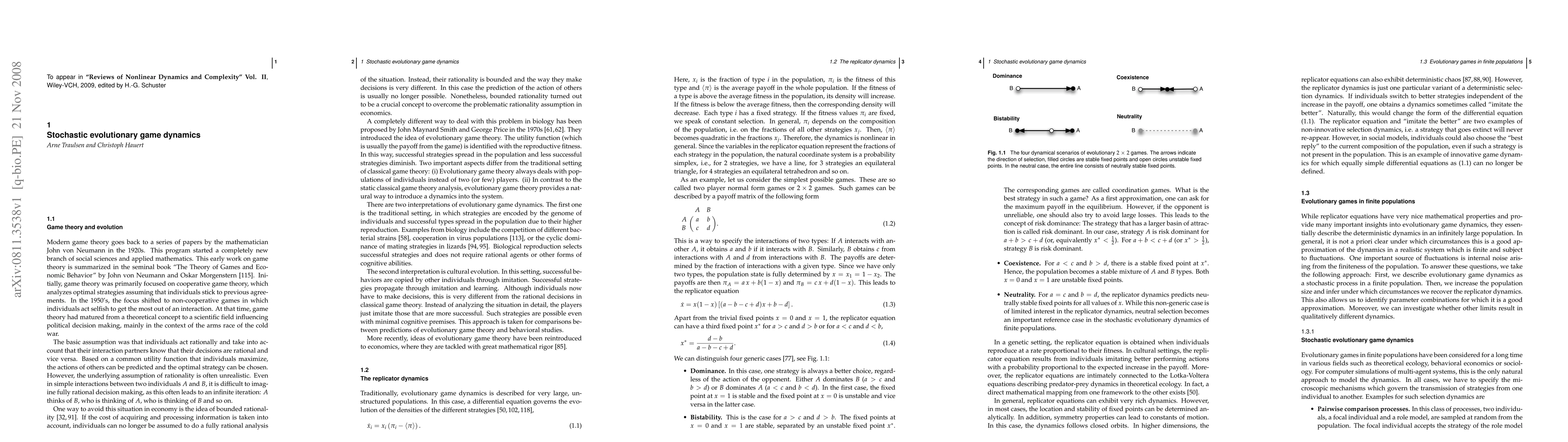 Summary: This review highlights recent advancements in the stochastic evolutionary game dynamics of finite populations, focusing on the interplay between randomness and evolutionary strategies. It provides insights into how probabilistic factors influence the outcomes of evolutionary processes.