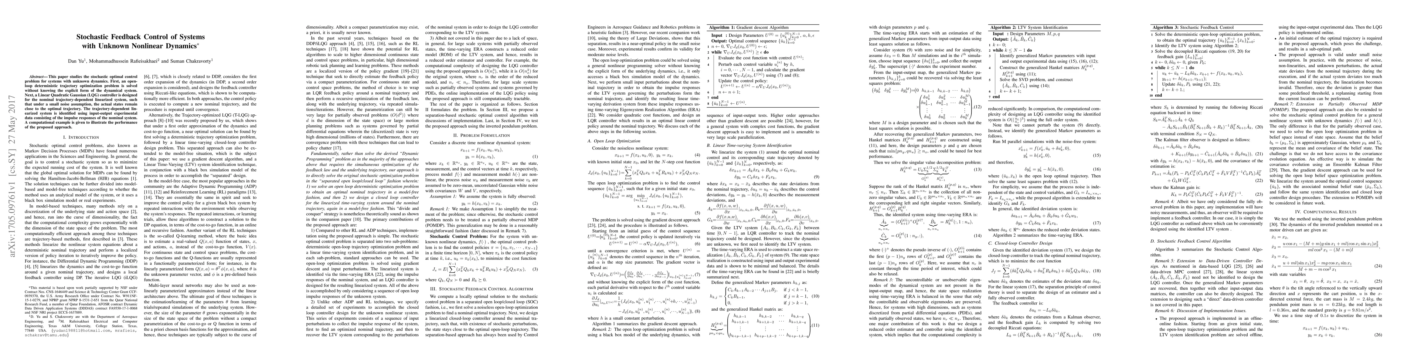 This paper presents a method for controlling systems with unknown nonlinear dynamics using stochastic feedback control, which aims to keep actual states close to optimal trajectories under small noise assumptions.
