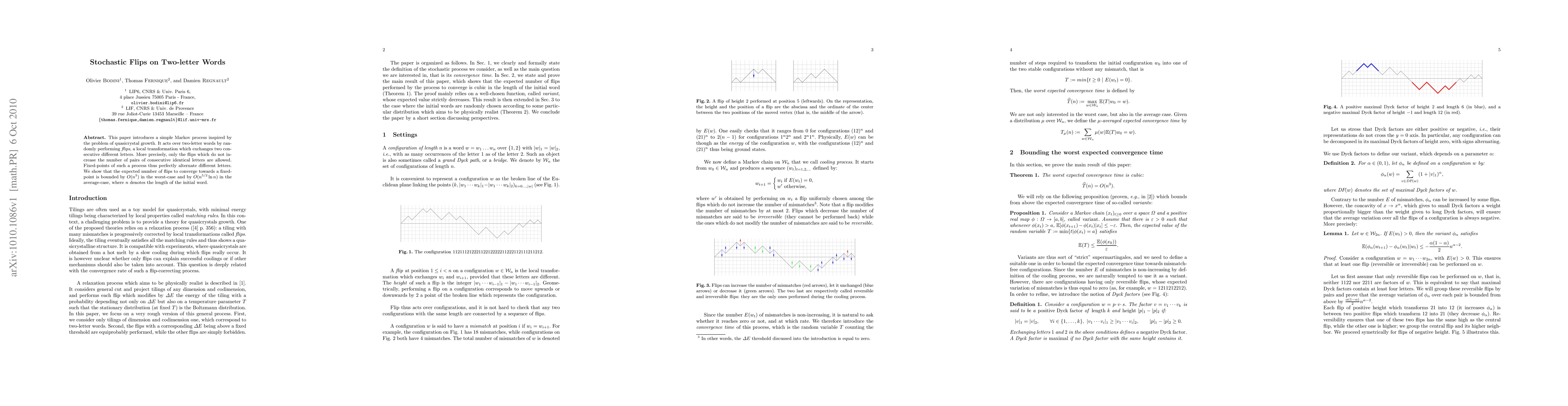 Researchers develop a Markov process to study quasicrystal growth by randomly flipping two-letter words, showing that the expected number of flips to converge towards a fixed-point is bounded by $O(n^3)$ in the worst-case and $O(n^{5/2} ilde{n})$ in the average-case.