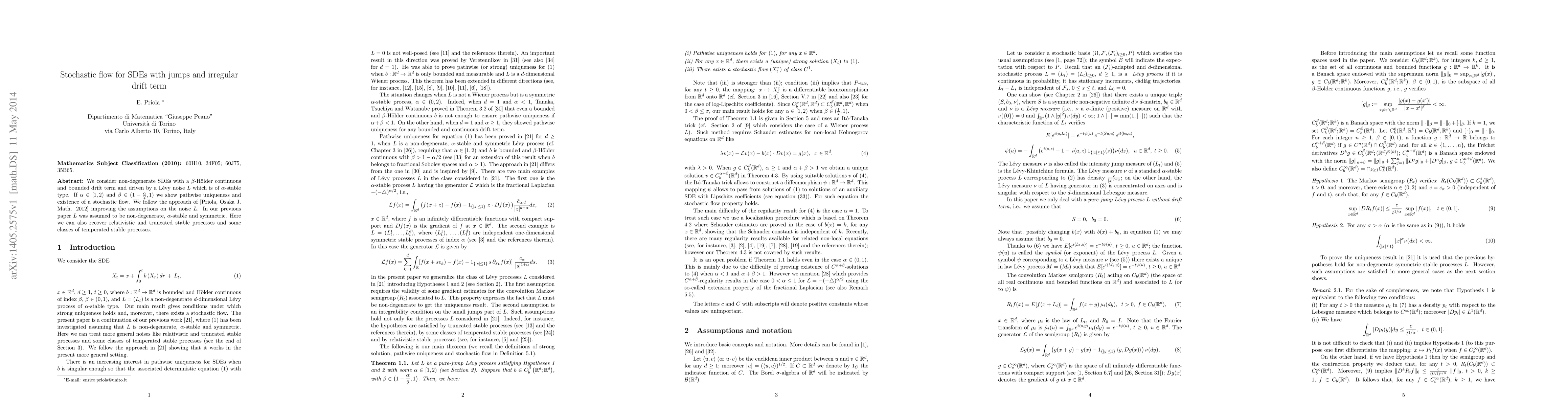 We consider non-degenerate SDEs with a $\beta$-Holder continuous and bounded drift term and driven by a Levy noise $L$ which is of $\alpha$-stable type. If $\alpha \in [1,2)$ and $\beta \in (1 - \frac{\alpha}{2},1) $ we show pathwise uniqueness and existence of a stochastic flow. We follow the approach of [Priola, Osaka J. Math. 2012] improving the assumptions on the noise $L$. In our previous paper $L$ was assumed to be non-degenerate, $\alpha$-stable and symmetric. Here we can also recover relativistic and truncated stable processes and some classes of temperated stable processes.