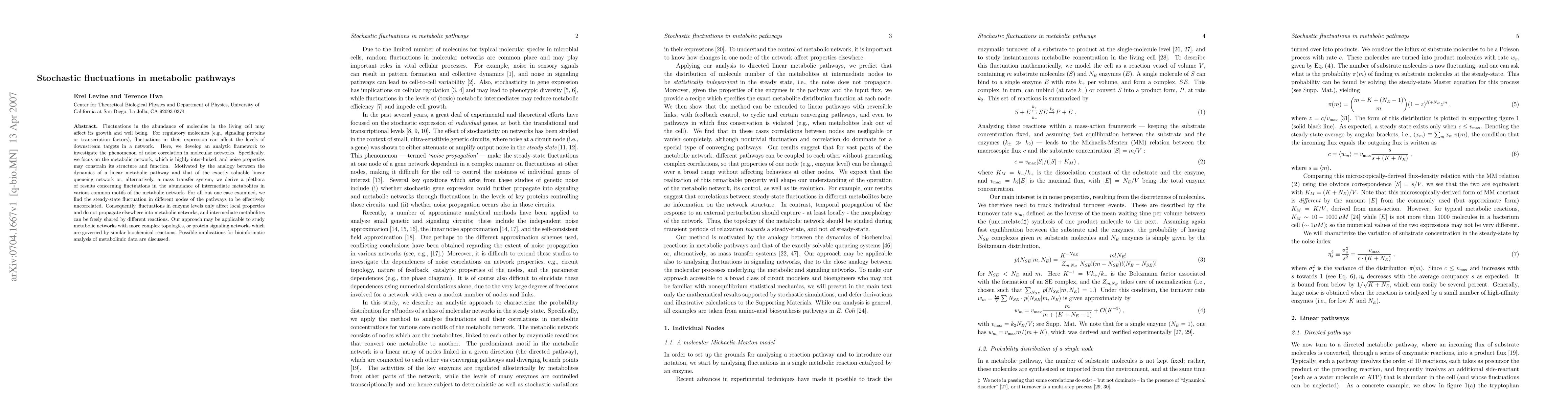 This study provides insights into the stochastic behavior of metabolic pathways, which can inform bioinformatic analysis of metabolomics data and potentially guide the design of synthetic biological systems.