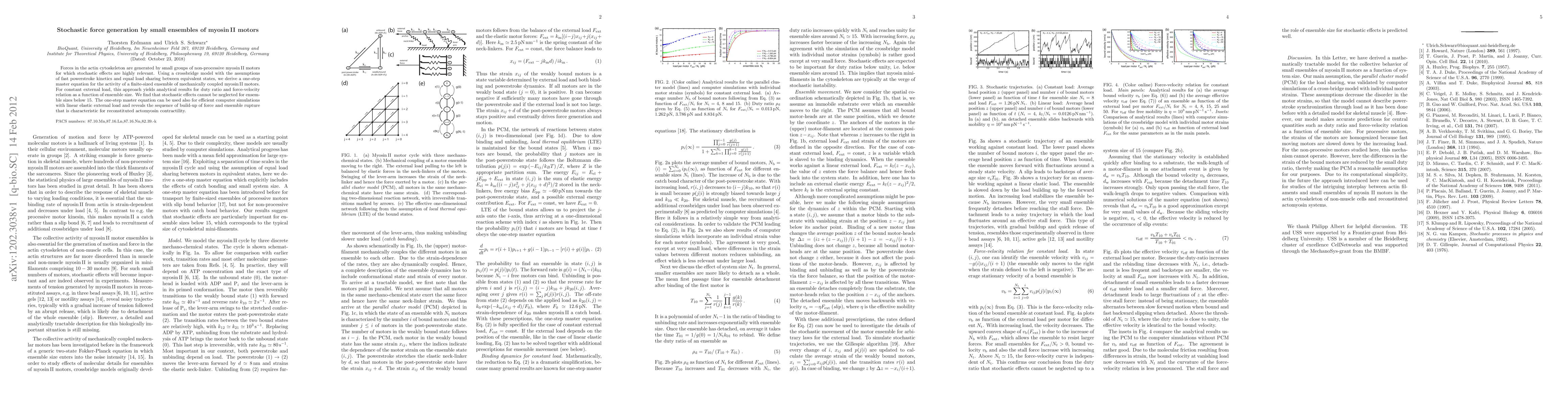 This paper develops a one-step master equation to model stochastic force generation by small groups of myosin II motors, showing that stochastic effects are significant for ensembles smaller than 15. The model provides analytical results for duty ratio and force-velocity relations, and it can simulate the build-up of force and ensemble rupture in reconstituted actomyosin contractility.