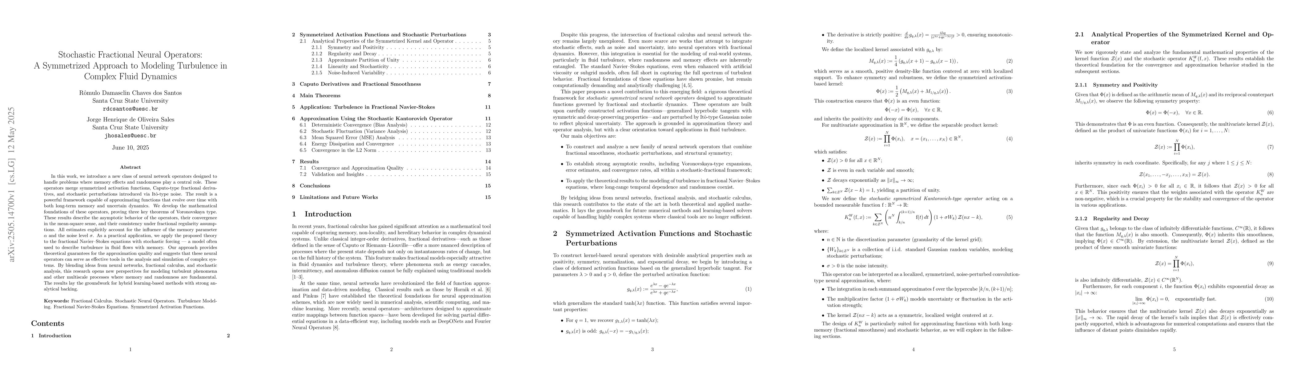 Researchers introduce a new approach to modeling turbulence in fluid dynamics using neural networks with fractional calculus and stochastic analysis, offering theoretical guarantees for approximation quality.