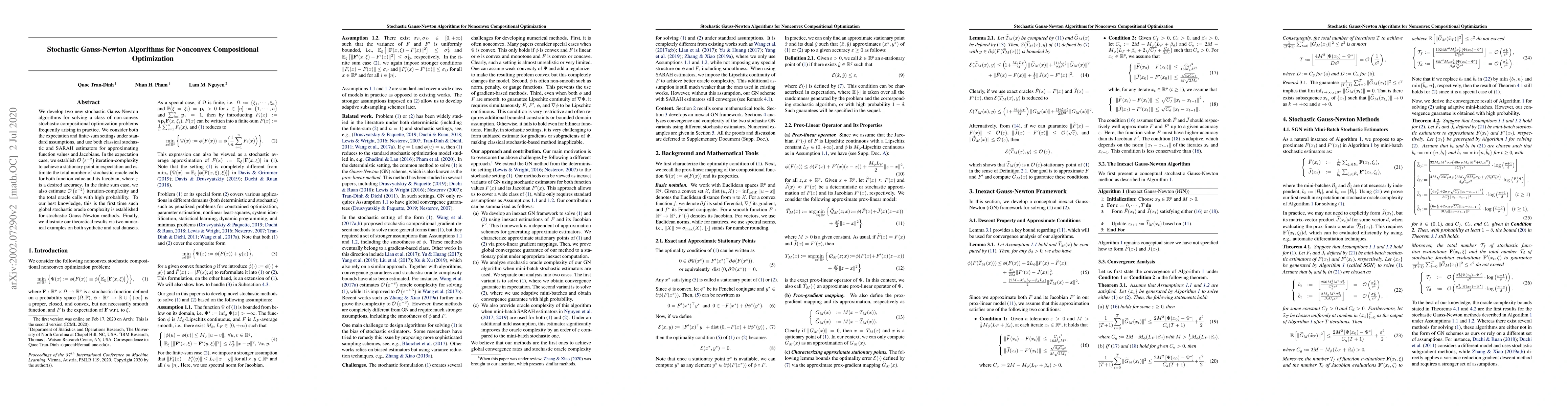This paper introduces two novel stochastic Gauss-Newton algorithms for nonconvex compositional optimization problems, providing $\mathcal{O}(\varepsilon^{-2})$ iteration-complexity for both expectation and finite-sum settings. Theoretical results are validated through numerical examples on synthetic and real datasets.