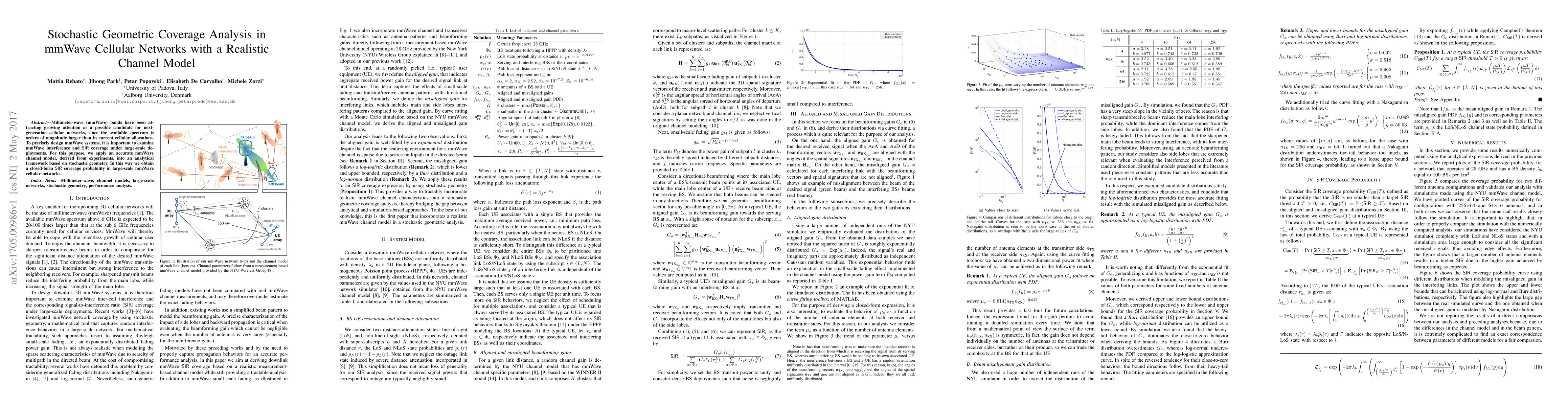 This paper uses stochastic geometry and a realistic mmWave channel model to analyze signal-to-interference ratio (SIR) coverage in large-scale mmWave cellular networks, providing a closed-form expression for SIR coverage probability. The study aims to aid in the precise design of next-generation cellular networks utilizing millimeter-wave bands.