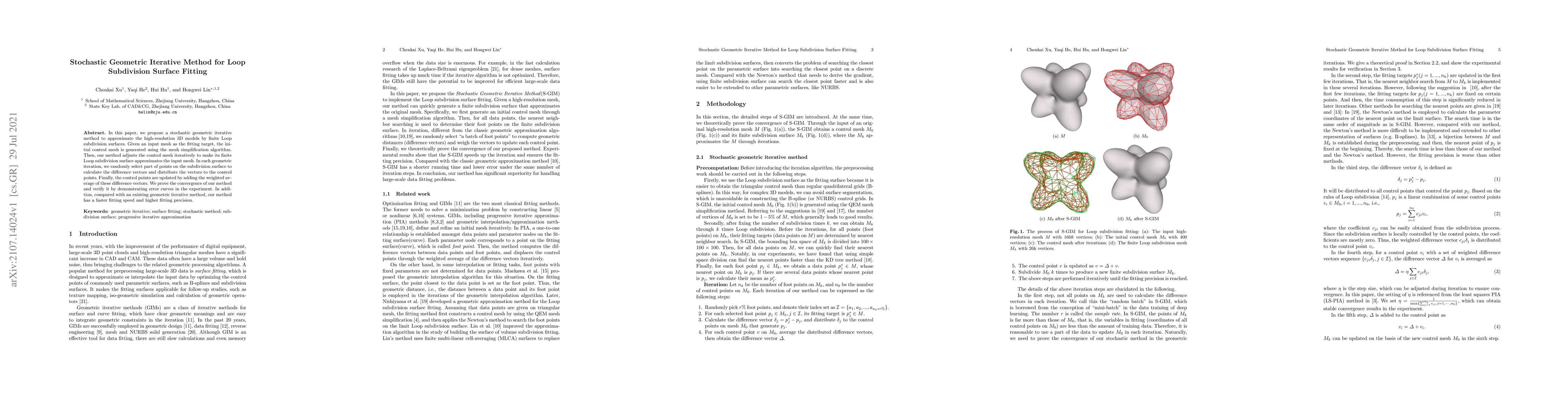 In this paper, we propose a stochastic geometric iterative method to approximate the high-resolution 3D models by finite Loop subdivision surfaces. Given an input mesh as the fitting target, the initial control mesh is generated using the mesh simplification algorithm. Then, our method adjusts the control mesh iteratively to make its finite Loop subdivision surface approximates the input mesh. In each geometric iteration, we randomly select part of points on the subdivision surface to calculate the difference vectors and distribute the vectors to the control points. Finally, the control points are updated by adding the weighted average of these difference vectors. We prove the convergence of our method and verify it by demonstrating error curves in the experiment. In addition, compared with an existing geometric iterative method, our method has a faster fitting speed and higher fitting precision.