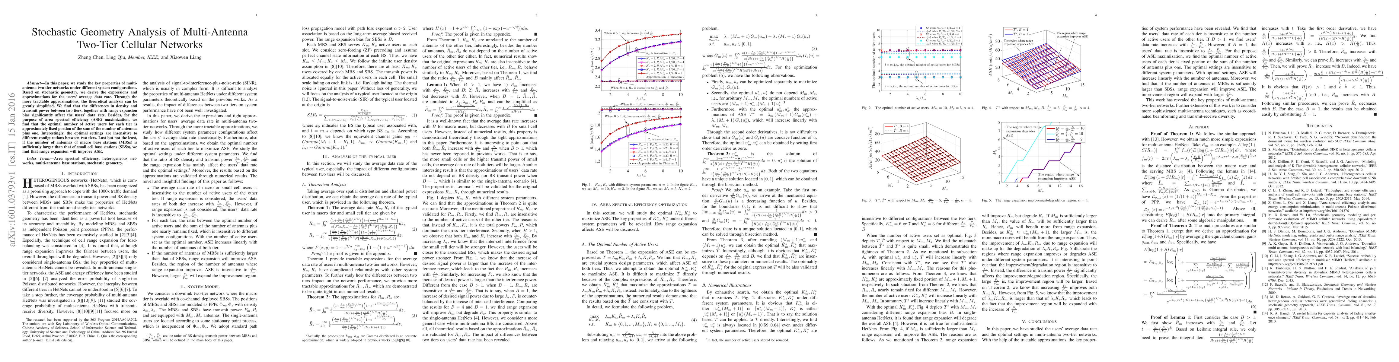 This paper employs stochastic geometry to analyze multi-antenna two-tier cellular networks, deriving expressions for users' average data rate and finding that density, transmit power, and range expansion significantly affect data rates. It concludes that optimal area spectral efficiency is achieved with a fixed proportion of active users relative to the total number of antennas, regardless of tier configurations, and that range expansion can improve efficiency when macro base stations have many more antennas than small cells.