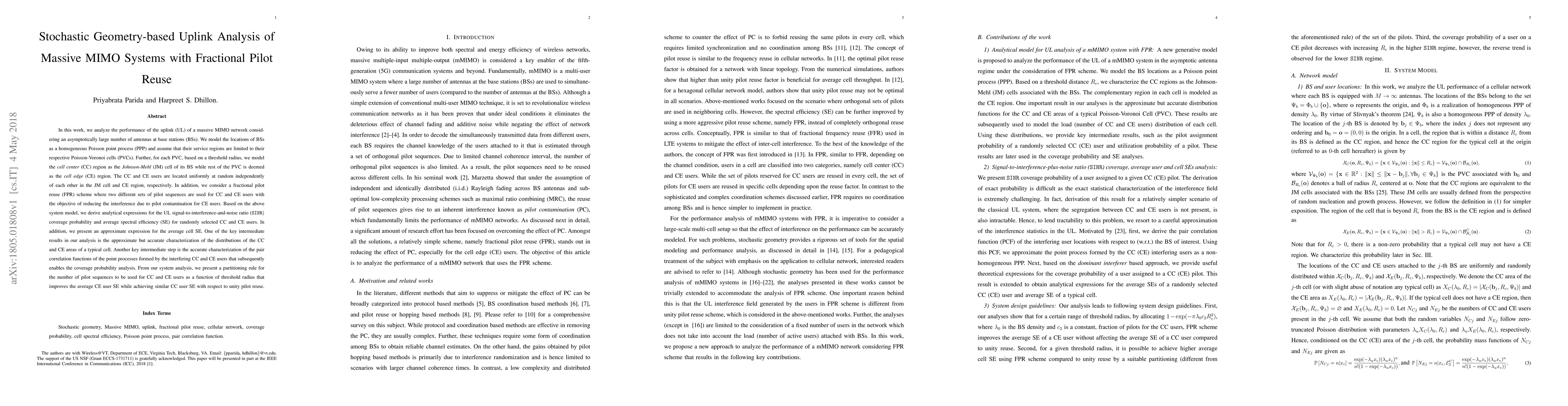 This research paper analyzes the performance of massive MIMO systems with fractional pilot reuse, proposing a partitioning rule to improve average spectral efficiency while maintaining similar user SE for CC users.