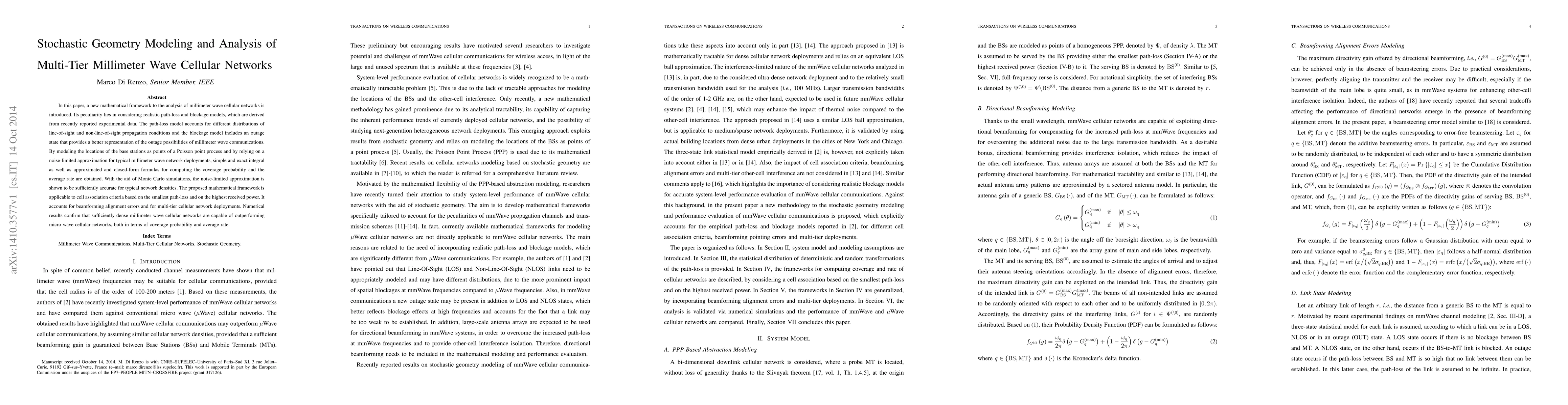 In this paper, a new mathematical framework to the analysis of millimeter wave cellular networks is introduced. Its peculiarity lies in considering realistic path-loss and blockage models, which are derived from recently reported experimental data. The path-loss model accounts for different distributions of line-of-sight and non-line-of-sight propagation conditions and the blockage model includes an outage state that provides a better representation of the outage possibilities of millimeter wave communications. By modeling the locations of the base stations as points of a Poisson point process and by relying on a noise-limited approximation for typical millimeter wave network deployments, simple and exact integral as well as approximated and closed-form formulas for computing the coverage probability and the average rate are obtained. With the aid of Monte Carlo simulations, the noise-limited approximation is shown to be sufficiently accurate for typical network densities. The proposed mathematical framework is applicable to cell association criteria based on the smallest path-loss and on the highest received power. It accounts for beamforming alignment errors and for multi-tier cellular network deployments. Numerical results confirm that sufficiently dense millimeter wave cellular networks are capable of outperforming micro wave cellular networks, both in terms of coverage probability and average rate.