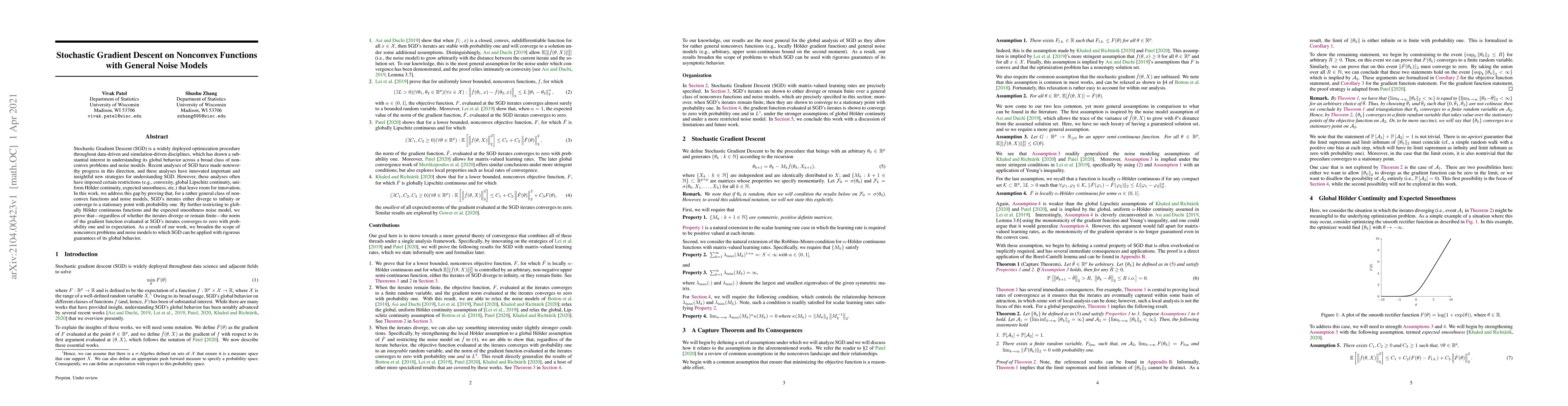 Stochastic Gradient Descent (SGD) is a widely deployed optimization procedure throughout data-driven and simulation-driven disciplines, which has drawn a substantial interest in understanding its global behavior across a broad class of nonconvex problems and noise models. Recent analyses of SGD have made noteworthy progress in this direction, and these analyses have innovated important and insightful new strategies for understanding SGD. However, these analyses often have imposed certain restrictions (e.g., convexity, global Lipschitz continuity, uniform Holder continuity, expected smoothness, etc.) that leave room for innovation. In this work, we address this gap by proving that, for a rather general class of nonconvex functions and noise models, SGD's iterates either diverge to infinity or converge to a stationary point with probability one. By further restricting to globally Holder continuous functions and the expected smoothness noise model, we prove that -- regardless of whether the iterates diverge or remain finite -- the norm of the gradient function evaluated at SGD's iterates converges to zero with probability one and in expectation. As a result of our work, we broaden the scope of nonconvex problems and noise models to which SGD can be applied with rigorous guarantees of its global behavior.