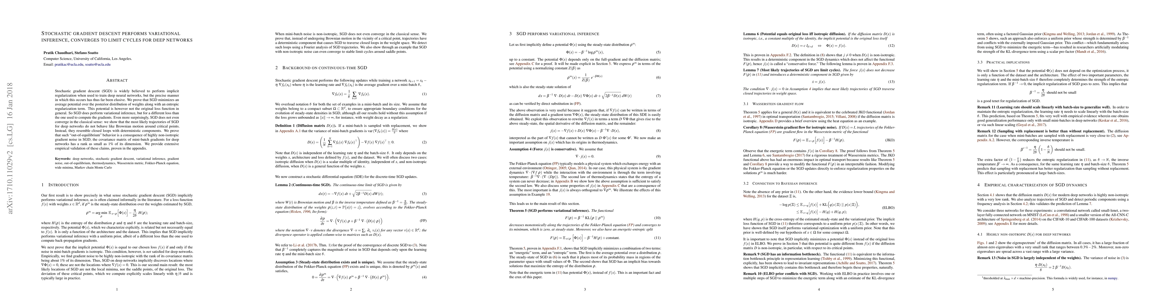 This paper demonstrates that SGD implicitly performs variational inference with a different loss function than the original one, and reveals that for deep networks, SGD does not converge classically but instead converges to limit cycles due to highly non-isotropic gradient noise. Empirical validation supports these theoretical findings.