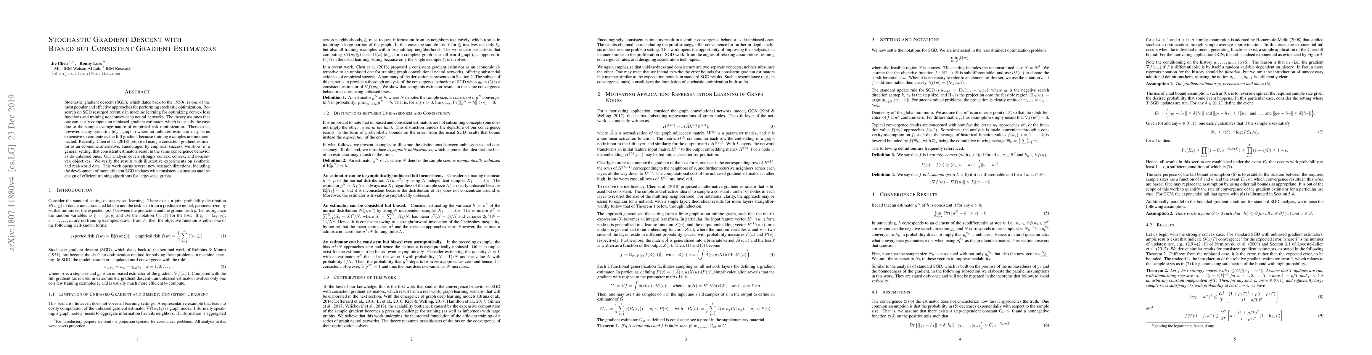 This paper investigates the use of consistent but biased gradient estimators in stochastic gradient descent (SGD), demonstrating that they achieve the same convergence behavior as unbiased estimators for various optimization problems, including strongly convex, convex, and nonconvex objectives. The findings suggest new avenues for developing more efficient SGD updates and training algorithms for large-scale graph data.