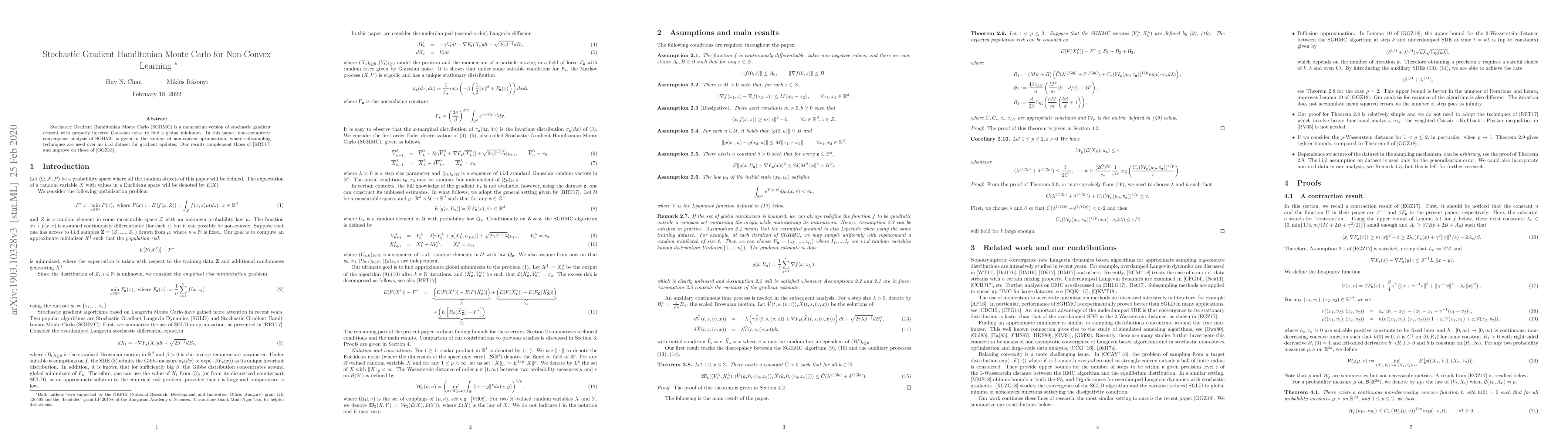 Stochastic Gradient Hamiltonian Monte Carlo (SGHMC) is a momentum version of stochastic gradient descent with properly injected Gaussian noise to find a global minimum. In this paper, non-asymptotic convergence analysis of SGHMC is given in the context of non-convex optimization, where subsampling techniques are used over an i.i.d dataset for gradient updates. Our results complement those of [RRT17] and improve on those of [GGZ18].
