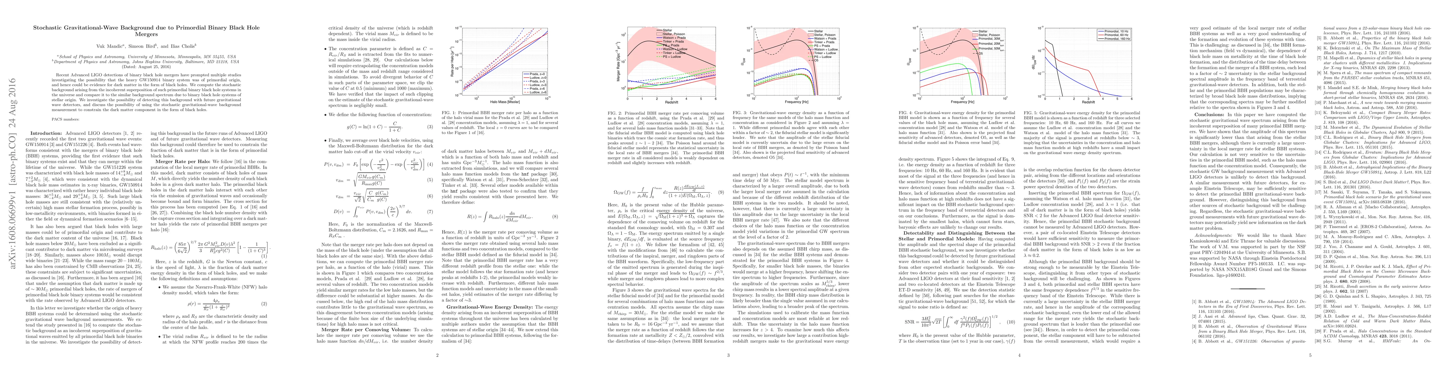This paper investigates the stochastic gravitational-wave background from primordial binary black hole mergers, comparing it to the background from stellar binary black holes. It explores the potential for detecting this background with future gravitational wave detectors and its implications for constraining dark matter in the form of black holes.