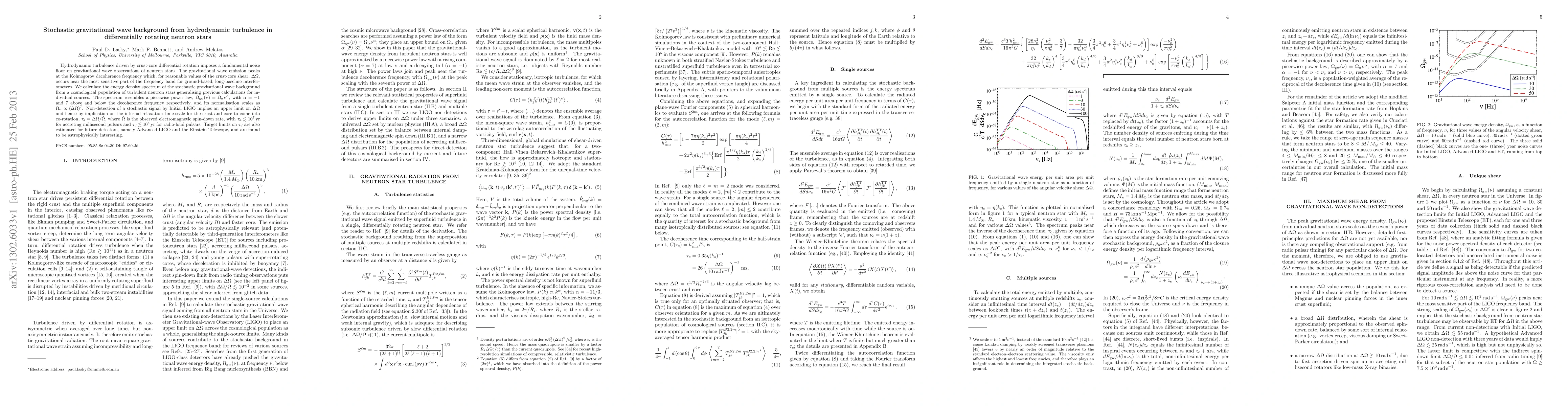 Hydrodynamic turbulence driven by crust-core differential rotation imposes a fundamental noise floor on gravitational wave observations of neutron stars. The gravitational wave emission peaks at the Kolmogorov decoherence frequency which, for reasonable values of the crust-core shear, \Delta\Omega, occurs near the most sensitive part of the frequency band for ground-based, long-baseline interferometers. We calculate the energy density spectrum of the stochastic gravitational wave background from a cosmological population of turbulent neutron stars generalising previous calculations for individual sources. The spectrum resembles a piecewise power law, \Omega_{gw}(\nu)=\Omega_{\alpha}\nu^{\alpha}, with \alpha=-1 and 7 above and below the decoherence frequency respectively, and its normalisation scales as \Omega_{\alpha}\propto(\Delta\Omega)^{7}. Non-detection of a stochastic signal by Initial LIGO implies an upper limit on \Delta\Omega and hence by implication on the internal relaxation time-scale for the crust and core to come into co-rotation, \tau_{d}=\Delta\Omega/\dot{\Omega}, where \dot{\Omega} is the observed electromagnetic spin-down rate, with \tau_{d}\lesssim 10^{7} yr for accreting millisecond pulsars and \tau_{d}\lesssim 10^{5} yr for radio-loud pulsars. Target limits on \tau_{d} are also estimated for future detectors, namely Advanced LIGO and the Einstein Telescope, and are found to be astrophysically interesting.