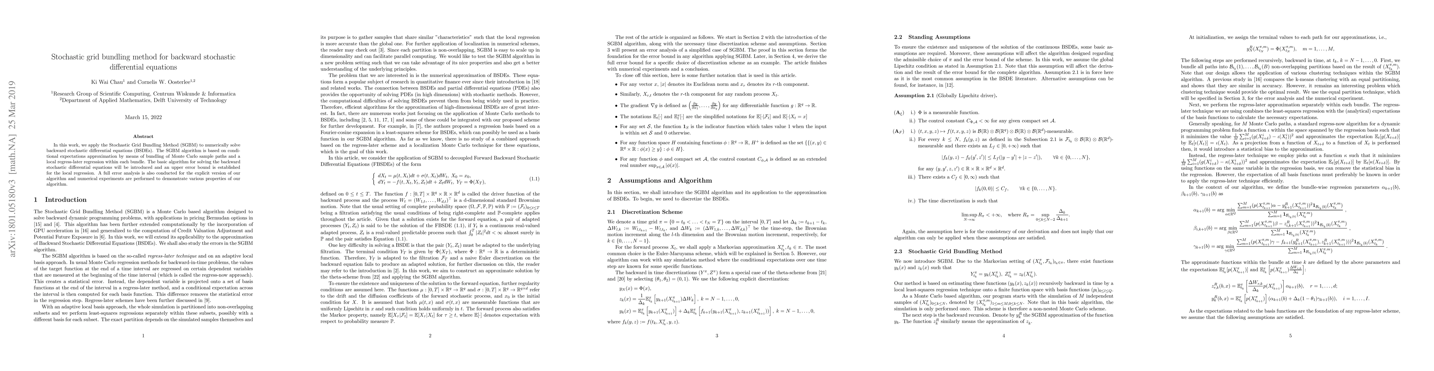 This paper introduces the Stochastic Grid Bundling Method (SGBM) for solving backward stochastic differential equations (BSDEs) by bundling Monte Carlo sample paths and local regression. The method's error bounds and properties are analyzed, and numerical experiments validate its effectiveness.