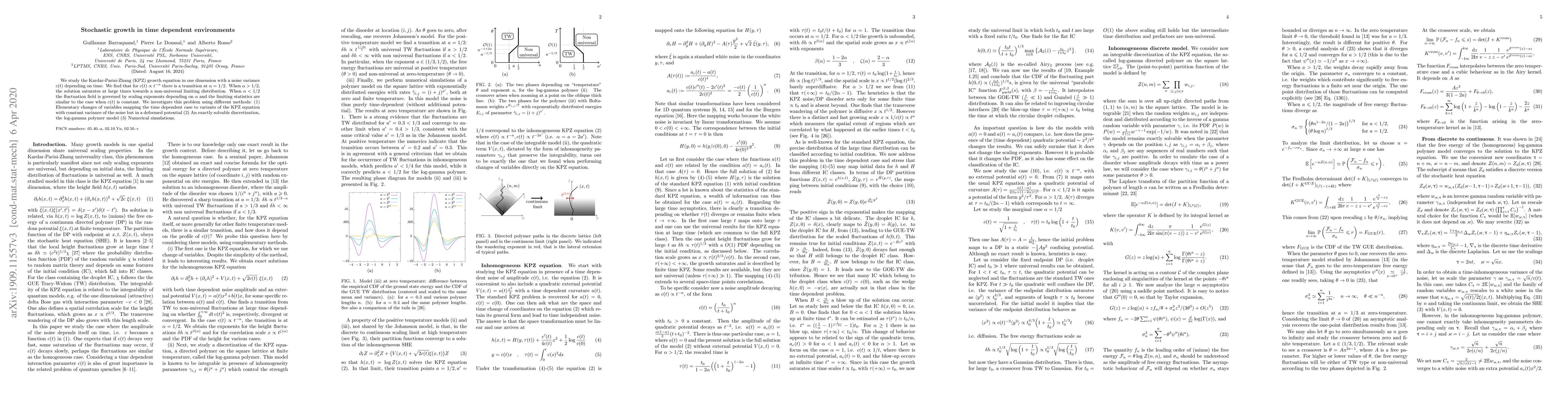 We study the Kardar-Parisi-Zhang (KPZ) growth equation in one dimension with a noise variance $c(t)$ depending on time. We find that for $c(t)\propto t^{-\alpha}$ there is a transition at $\alpha=1/2$. When $\alpha>1/2$, the solution saturates at large times towards a non-universal limiting distribution. When $\alpha<1/2$ the fluctuation field is governed by scaling exponents depending on $\alpha$ and the limiting statistics are similar to the case when $c(t)$ is constant. We investigate this problem using different methods: (1) Elementary changes of variables mapping the time dependent case to variants of the KPZ equation with constant variance of the noise but in a deformed potential (2) An exactly solvable discretization, the log-gamma polymer model (3) Numerical simulations.