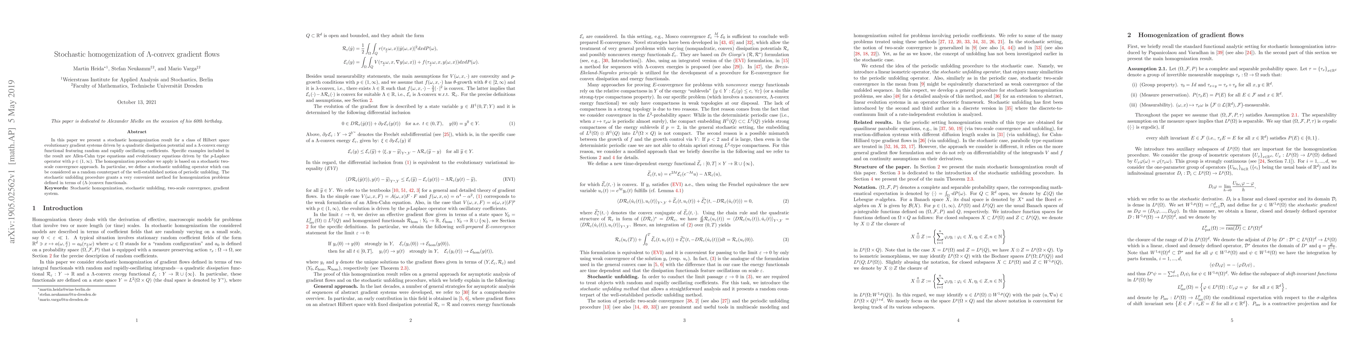 This paper presents a stochastic homogenization result for evolutionary gradient systems in Hilbert spaces with $\Lambda$-convex energy functionals and random coefficients. The method employs a stochastic two-scale convergence approach and a stochastic unfolding operator, applicable to Allen-Cahn type equations and $p$-Laplace operator equations.