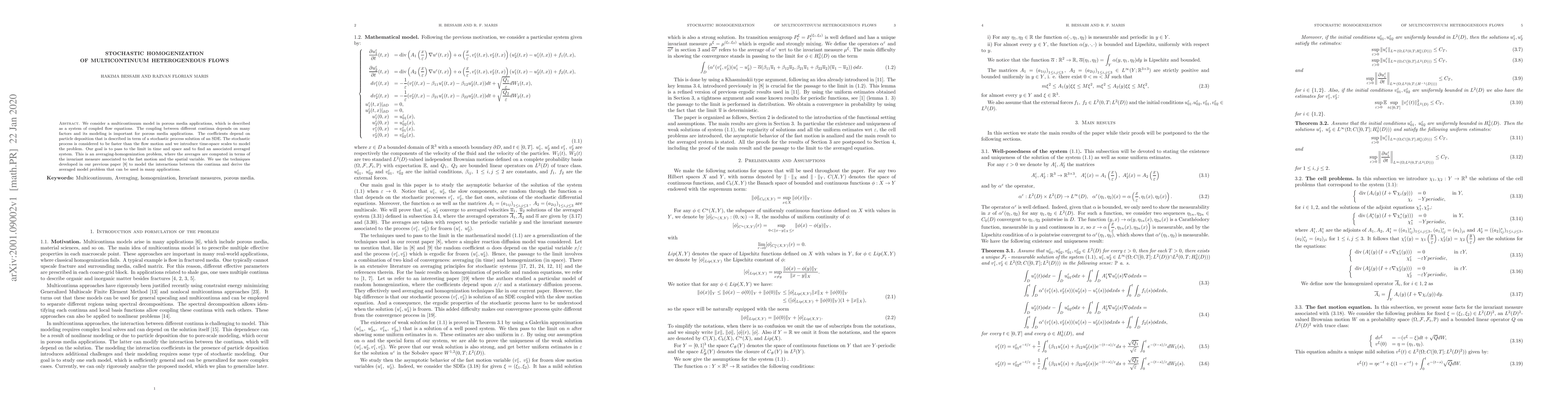 This paper investigates the stochastic homogenization of multicontinuum flow models in porous media, focusing on the coupling between different continua influenced by a stochastic process. The authors derive an averaged system by passing to the limit in time and space, utilizing the invariant measure associated with the fast stochastic process to model interactions and generate an applicable averaged model.