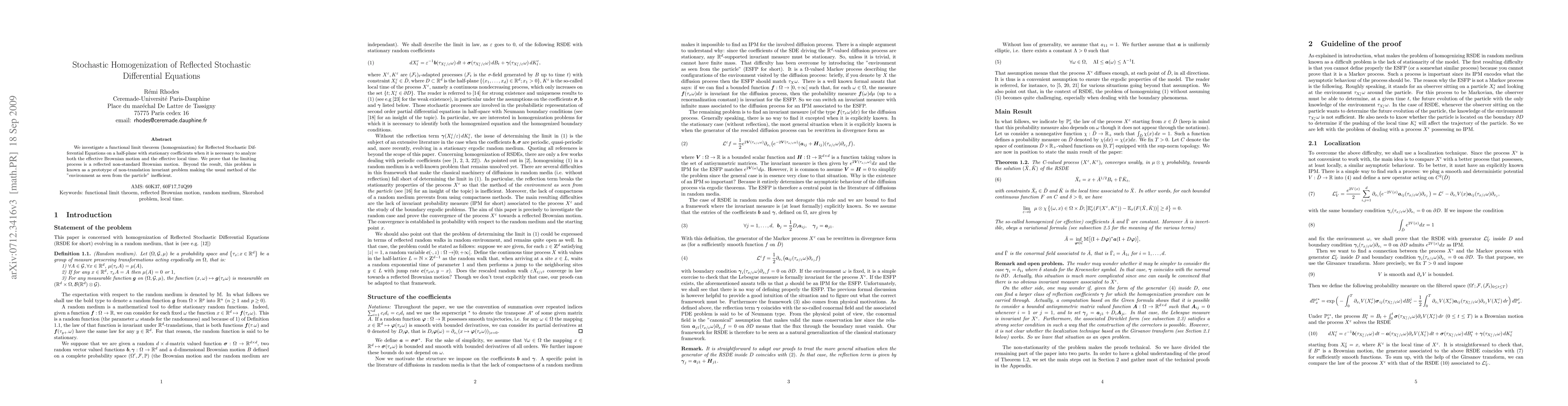 Researchers investigate a theorem for Reflected Stochastic Differential Equations on a half-plane with stationary coefficients, proving the limiting process is a reflected non-standard Brownian motion.