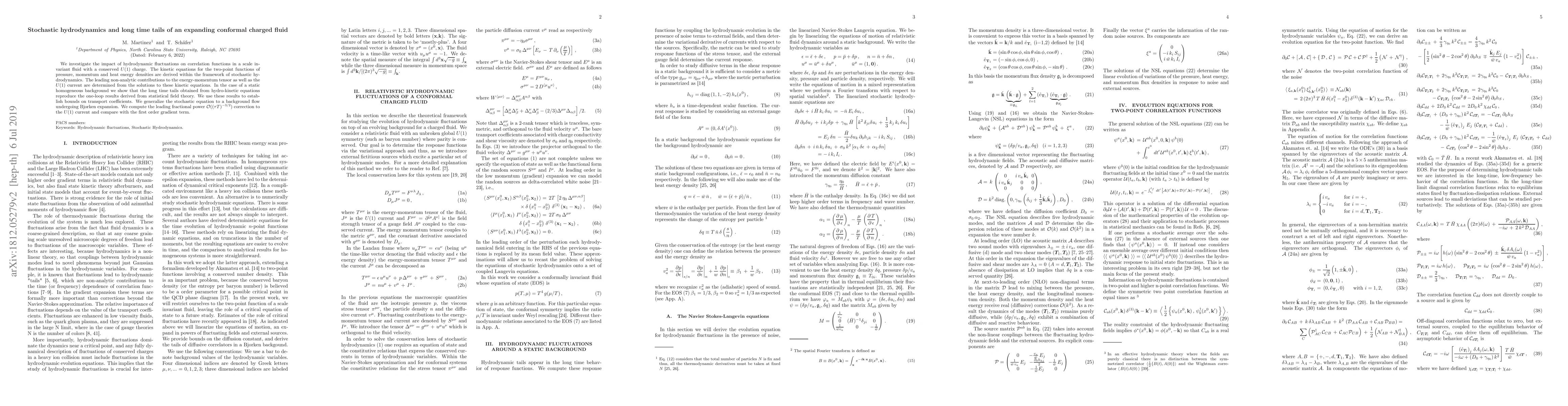 We investigate the impact of hydrodynamic fluctuations on correlation functions in a scale invariant fluid with a conserved $U(1)$ charge. The kinetic equations for the two-point functions of pressure, momentum and heat energy densities are derived within the framework of stochastic hydrodynamics. The leading non-analytic contributions to the energy-momentum tensor as well as the $U(1)$ current are determined from the solutions to these kinetic equations. In the case of a static homogeneous background we show that the long time tails obtained from hydro-kinetic equations reproduce the one-loop results derived from statistical field theory. We use these results to establish bounds on transport coefficients. We generalize the stochastic equation to a background flow undergoing Bjorken expansion. We compute the leading fractional power $\mathcal{O}((\tau T)^{-3/2})$ correction to the $U(1)$ current and compare with the first order gradient term.