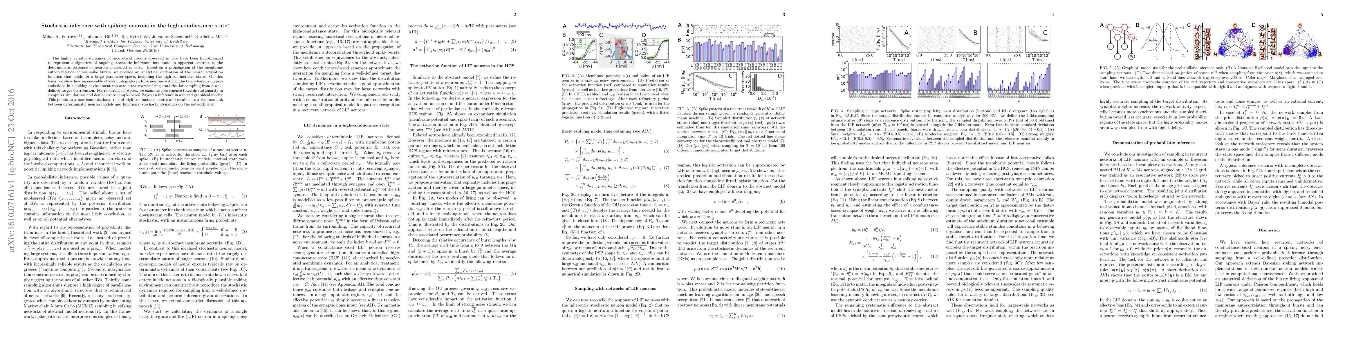 This paper analytically derives a neural activation function for neurons in the high-conductance state, demonstrating how spiking neurons can perform stochastic inference through sample-based Bayesian inference in recurrent networks. It establishes a connection between deterministic neuron models and stochastic dynamics at the network level.