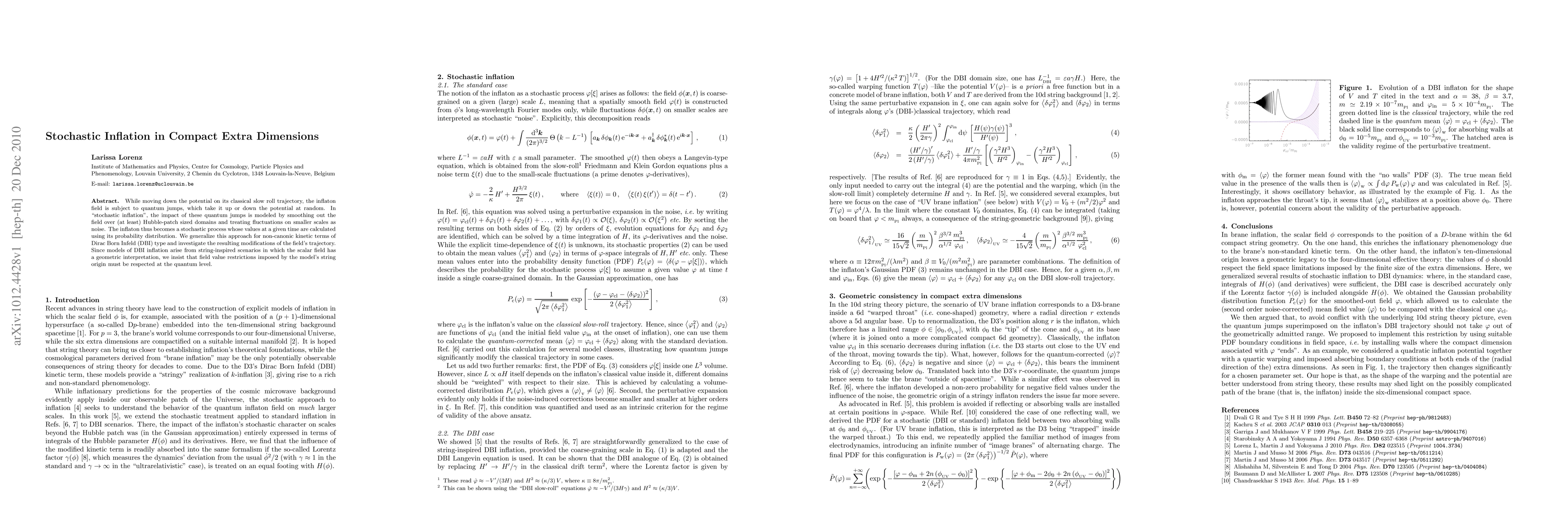 While moving down the potential on its classical slow roll trajectory, the inflaton field is subject to quantum jumps, which take it up or down the potential at random. In "stochastic inflation", the impact of these quantum jumps is modeled by smoothing out the field over (at least) Hubble-patch sized domains and treating fluctuations on smaller scales as noise. The inflaton thus becomes a stochastic process whose values at a given time are calculated using its probability distribution. We generalize this approach for non-canonic kinetic terms of Dirac Born Infeld (DBI) type and investigate the resulting modifications of the field's trajectory. Since models of DBI inflation arise from string-inspired scenarios in which the scalar field has a geometric interpretation, we insist that field value restrictions imposed by the model's string origin must be respected at the quantum level.
