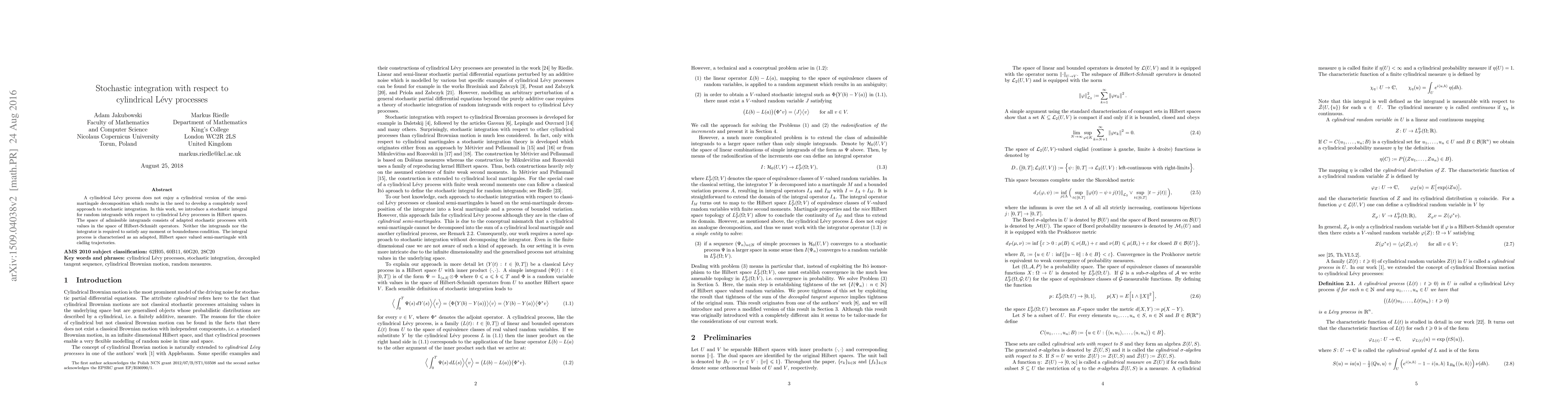 This paper develops a novel stochastic integration framework for cylindrical Lévy processes in Hilbert spaces, introducing a new integral for random integrands without requiring moment or boundedness conditions. The integral is characterized as an adapted, Hilbert space valued semi-martingale with cadlag trajectories.