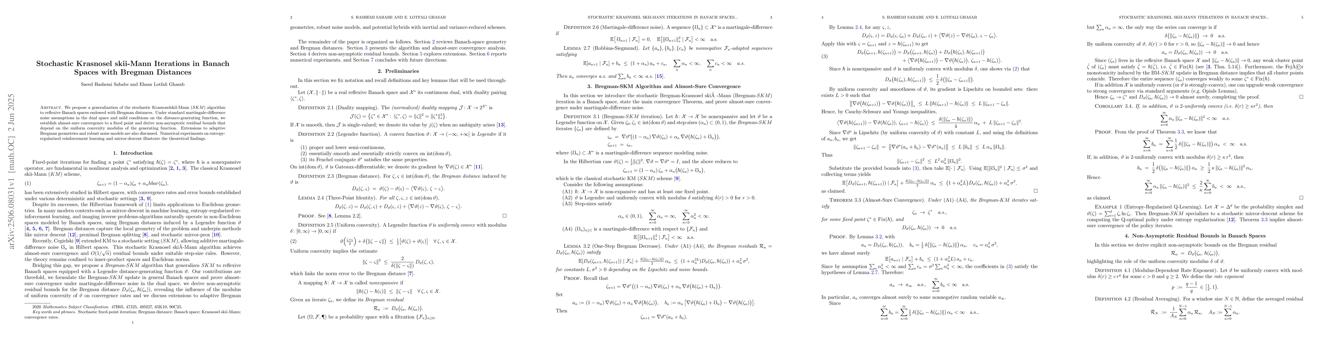 We propose a generalization of the stochastic Krasnoselskil-Mann $(SKM)$ algorithm to reflexive Banach spaces endowed with Bregman distances. Under standard martingale-difference noise assumptions in the dual space and mild conditions on the distance-generating function, we establish almost-sure convergence to a fixed point and derive non-asymptotic residual bounds that depend on the uniform convexity modulus of the generating function. Extensions to adaptive Bregman geometries and robust noise models are also discussed. Numerical experiments on entropy-regularized reinforcement learning and mirror-descent illustrate the theoretical findings.