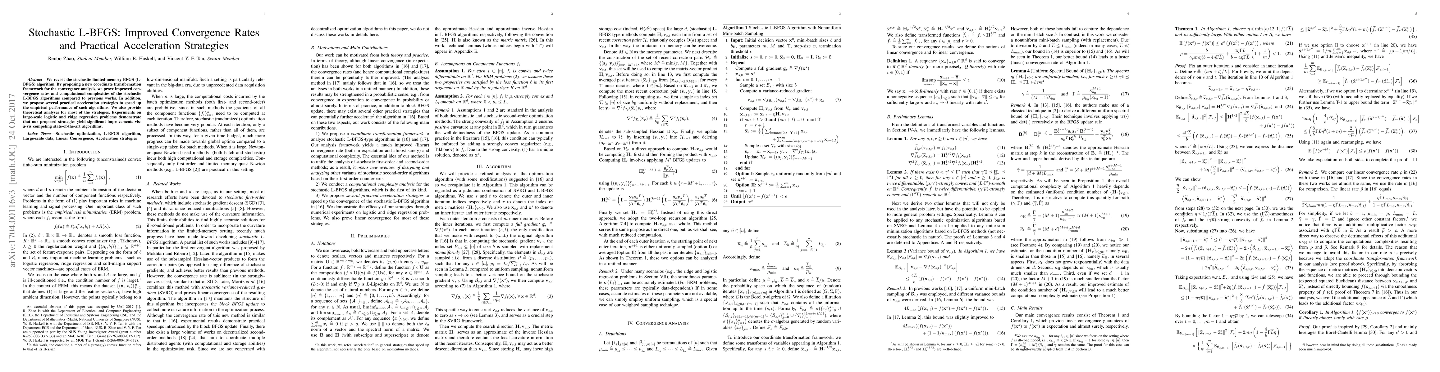 This paper proposes a new framework for analyzing stochastic limited-memory BFGS (L-BFGS) algorithms, demonstrating improved convergence rates and computational complexities. It also introduces practical acceleration strategies that significantly enhance empirical performance, supported by theoretical analyses and empirical validation on large-scale logistic and ridge regression problems.