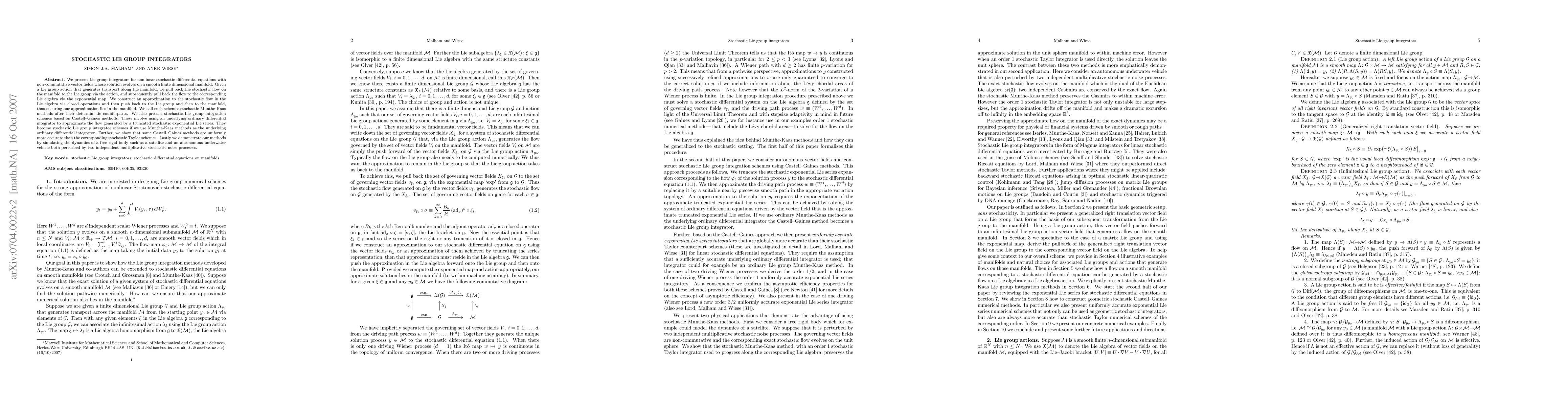 This paper introduces Lie group integrators for solving nonlinear stochastic differential equations on manifolds, proposing stochastic Munthe-Kaas methods and Castell-Gaines-based schemes. It demonstrates superior accuracy of certain Castell-Gaines methods over stochastic Taylor schemes and applies the methods to simulate stochastic dynamics in rigid bodies.