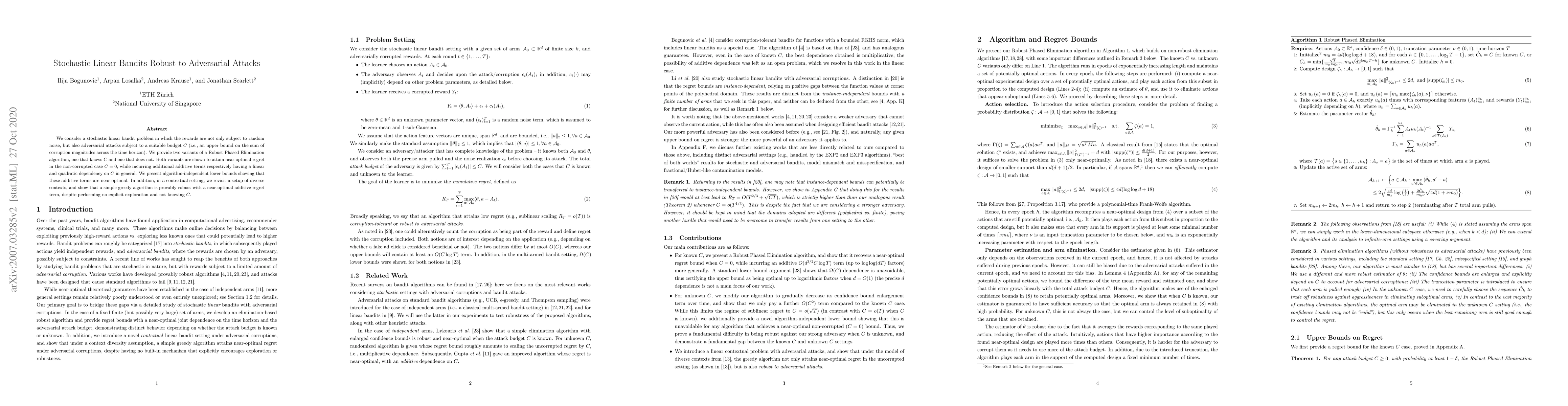 This paper addresses stochastic linear bandit problems with adversarial attacks within a specified budget $C$. It proposes two Robust Phased Elimination algorithms, achieving near-optimal regret with linear and quadratic penalties dependent on $C$. Additionally, a simple greedy algorithm is shown to be robust and near-optimal in contextual settings without needing to know $C$.
