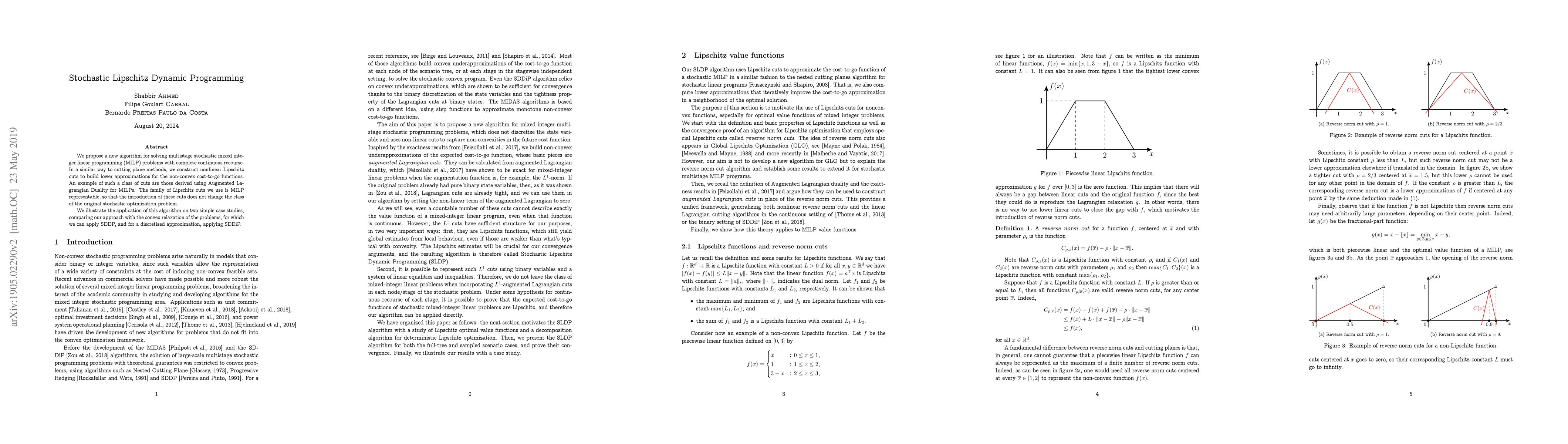 We propose a new algorithm for solving multistage stochastic mixed integer linear programming (MILP) problems with complete continuous recourse. In a similar way to cutting plane methods, we construct nonlinear Lipschitz cuts to build lower approximations for the non-convex cost to go functions. An example of such a class of cuts are those derived using Augmented Lagrangian Duality for MILPs. The family of Lipschitz cuts we use is MILP representable, so that the introduction of these cuts does not change the class of the original stochastic optimization problem. We illustrate the application of this algorithm on two simple case studies, comparing our approach with the convex relaxation of the problems, for which we can apply SDDP, and for a discretized approximation, applying SDDiP.