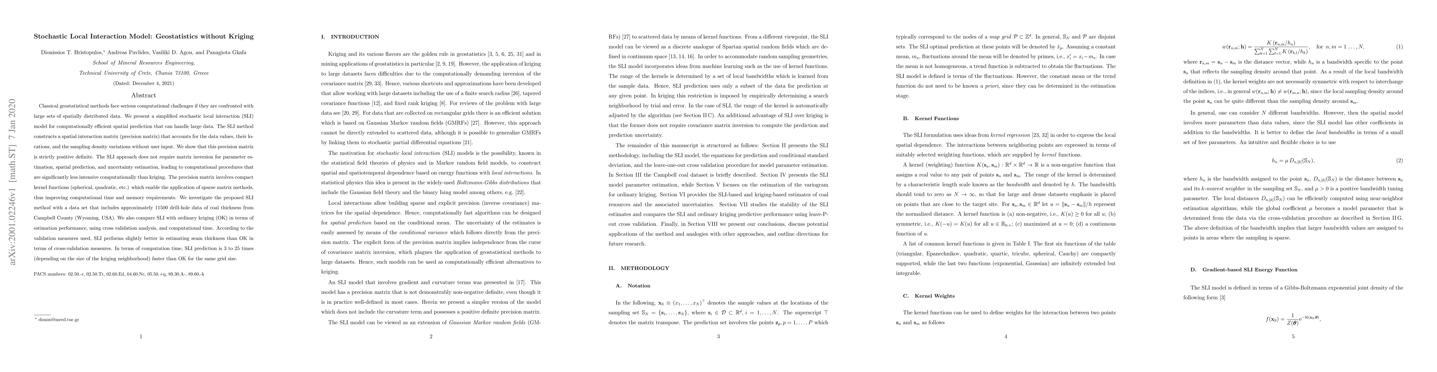 A new method called Stochastic Local Interaction Model (SLI) offers faster and more efficient spatial prediction for large datasets without requiring user input, outperforming traditional geostatistical methods in some cases.