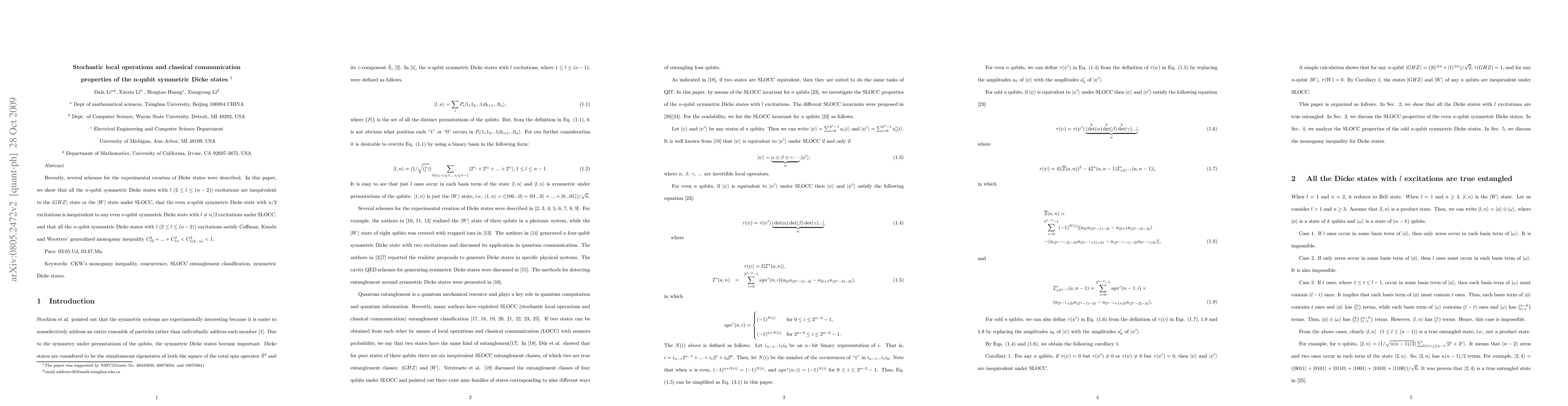 described. In this paper, we show that all the $n$-qubit symmetric Dicke states