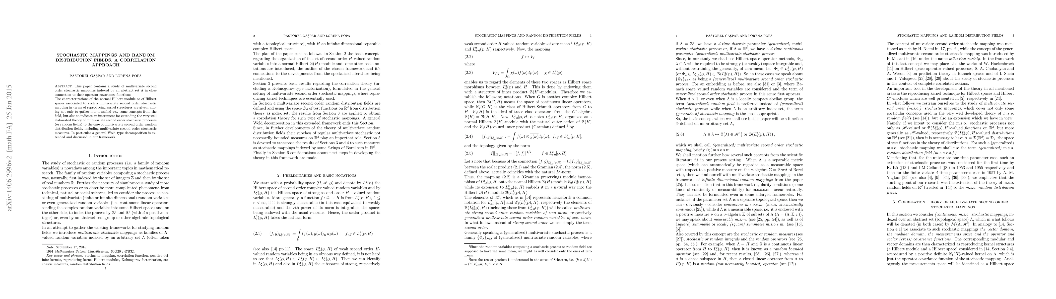 This paper investigates multivariate second order stochastic mappings and their operator covariance functions, characterizing associated Hilbert spaces via reproducing kernel structures, aiming to extend the theory of random fields to random distribution fields and stochastic measures. A generalized Wold decomposition is discussed in this new framework.