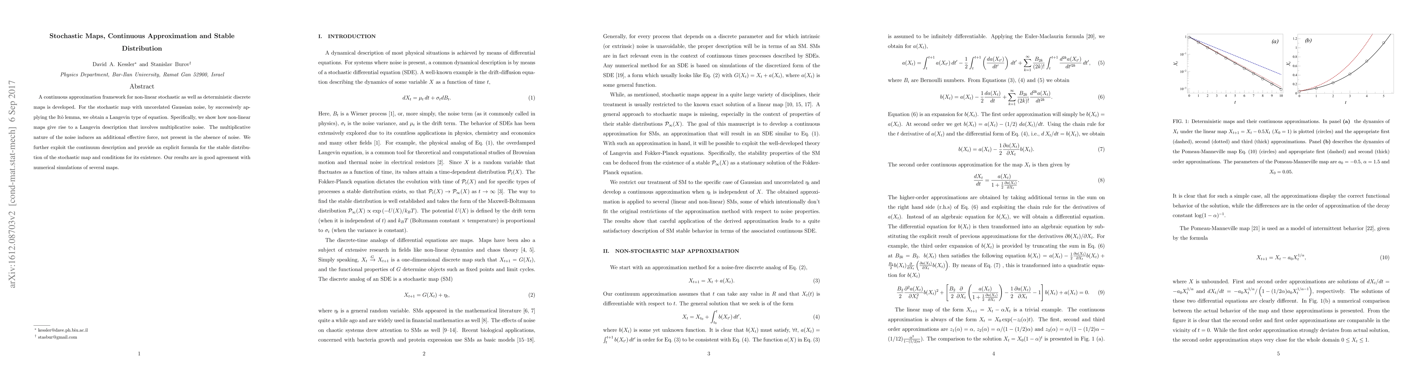 This paper develops a continuous approximation framework for non-linear stochastic and deterministic discrete maps, showing that multiplicative noise from stochastic maps induces an additional effective force. It provides an explicit formula for the stable distribution of these maps and validates the results through numerical simulations.