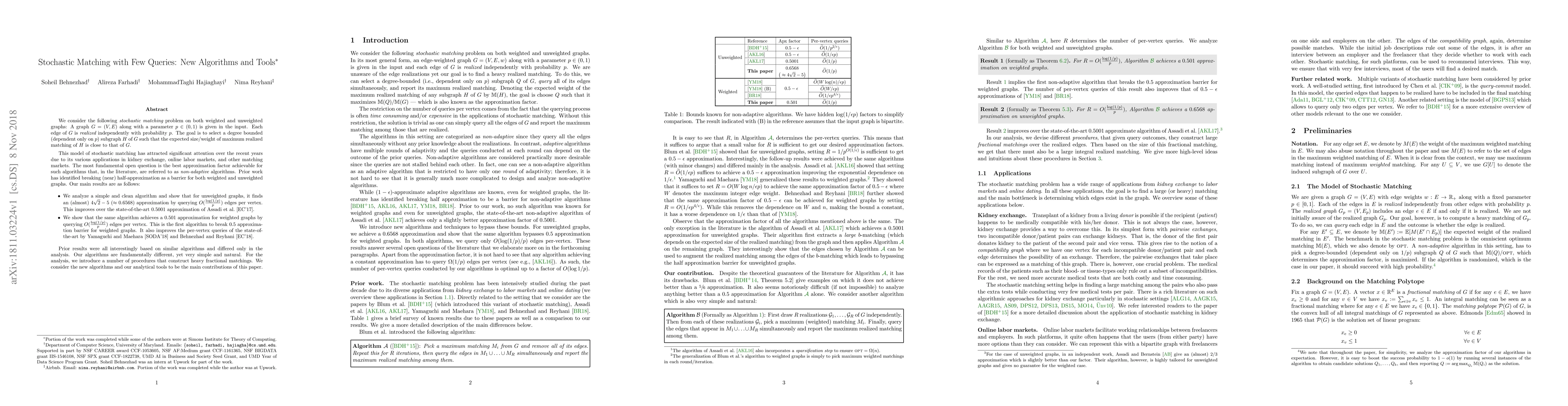 We consider the following stochastic matching problem on both weighted and unweighted graphs: A graph $G(V, E)$ along with a parameter $p \in (0, 1)$ is given in the input. Each edge of $G$ is realized independently with probability $p$. The goal is to select a degree bounded (dependent only on $p$) subgraph $H$ of $G$ such that the expected size/weight of maximum realized matching of $H$ is close to that of $G$. This model of stochastic matching has attracted significant attention over the recent years due to its various applications. The most fundamental open question is the best approximation factor achievable for such algorithms that, in the literature, are referred to as non-adaptive algorithms. Prior work has identified breaking (near) half-approximation as a barrier for both weighted and unweighted graphs. Our main results are as follows: -- We analyze a simple and clean algorithm and show that for unweighted graphs, it finds an (almost) $4\sqrt{2}-5$ ($\approx 0.6568$) approximation by querying $O(\frac{\log (1/p)}{p})$ edges per vertex. This improves over the state-of-the-art $0.5001$ approximate algorithm of Assadi et al. [EC'17]. -- We show that the same algorithm achieves a $0.501$ approximation for weighted graphs by querying $O(\frac{\log (1/p)}{p})$ edges per vertex. This is the first algorithm to break $0.5$ approximation barrier for weighted graphs. It also improves the per-vertex queries of the state-of-the-art by Yamaguchi and Maehara [SODA'18] and Behnezhad and Reyhani [EC'18]. Our algorithms are fundamentally different from prior works, yet are very simple and natural. For the analysis, we introduce a number of procedures that construct heavy fractional matchings. We consider the new algorithms and our analytical tools to be the main contributions of this paper.