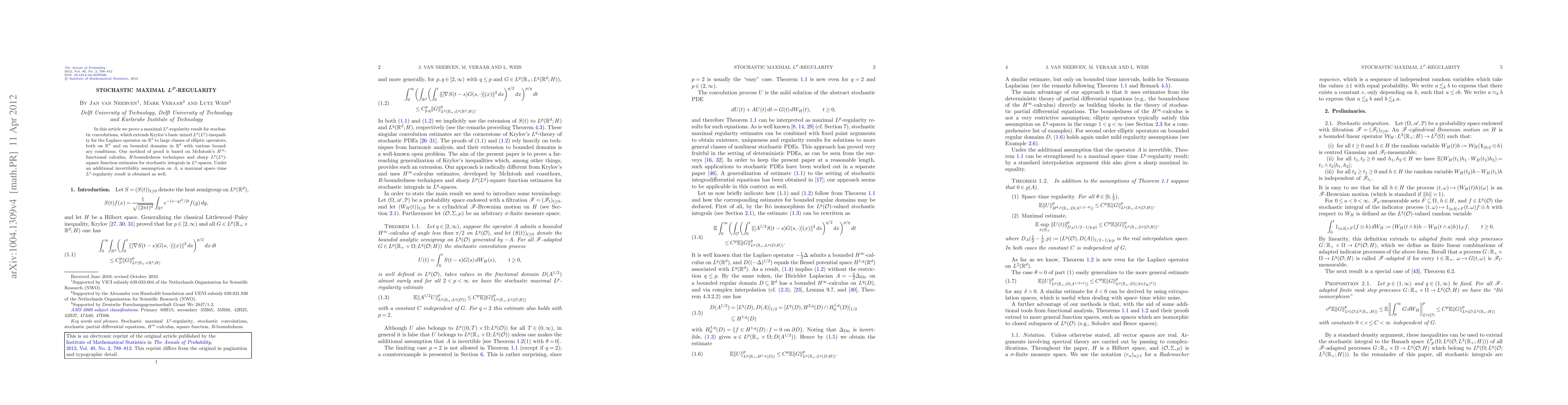 This paper proves maximal $L^p$-regularity for stochastic convolutions, extending Krylov's inequalities to various elliptic operators using McIntosh's $H^{\infty}$-functional calculus and $R$-boundedness techniques. An invertibility condition on $A$ additionally yields maximal space-time $L^p$-regularity.