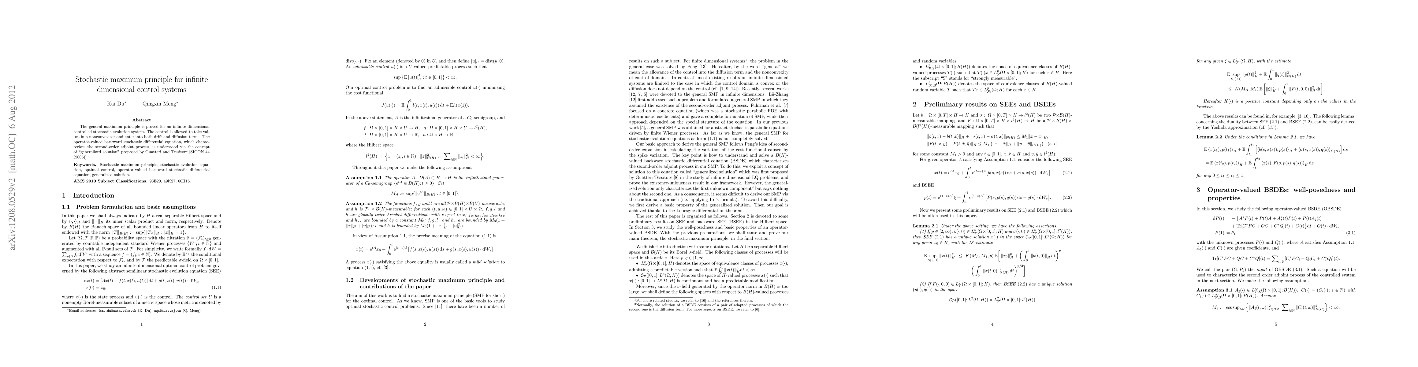 This paper establishes the general maximum principle for infinite dimensional stochastic control systems where controls can reside in nonconvex sets and affect both drift and diffusion terms. The analysis utilizes the concept of "generalized solution" to address the operator-valued backward stochastic differential equation.