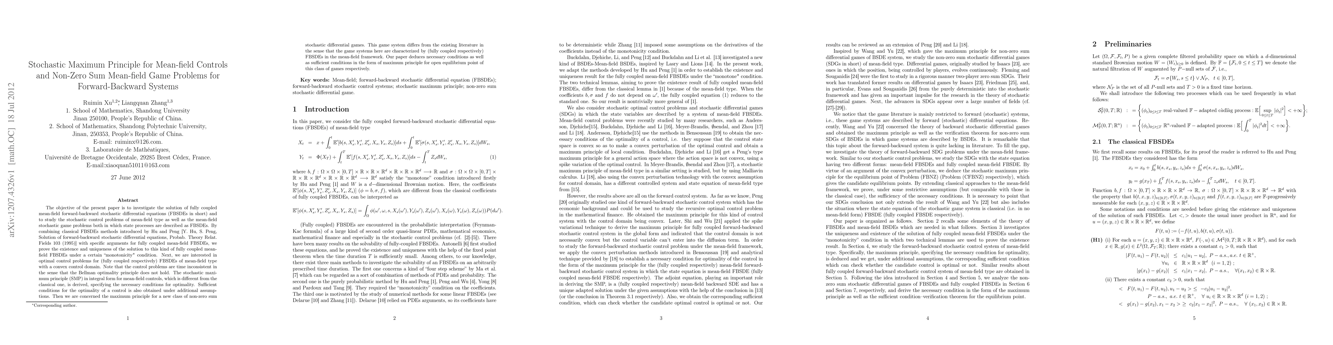 The objective of the present paper is to investigate the solution of fully coupled mean-field forward-backward stochastic differential equations (FBSDEs in short) and to study the stochastic control problems of mean-field type as well as the mean-field stochastic game problems both in which state processes are described as FBSDEs. By combining classical FBSDEs methods introduced by Hu and Peng [Y. Hu, S. Peng, Solution of forward-backward stochastic differential equations, Probab. Theory Relat. Fields 103 (1995)] with specific arguments for fully coupled mean-field FBSDEs, we prove the existence and uniqueness of the solution to this kind of fully coupled mean-field FBSDEs under a certain \textquotedblleft monotonicity" condition. Next, we are interested in optimal control problems for (fully coupled respectively) FBSDEs of mean-field type with a convex control domain. Note that the control problems are time inconsistent in the sense that the Bellman optimality principle does not hold. The stochastic maximum principle (SMP) in integral form for mean-field controls, which is different from the classical one, is derived, specifying the necessary conditions for optimality. Sufficient conditions for the optimality of a control is also obtained under additional assumptions. Then we are concerned the maximum principle for a new class of non-zero sum stochastic differential games. This game system differs from the existing literature in the sense that the game systems here are characterized by (fully coupled respectively) FBSDEs in the mean-field framework. Our paper deduces necessary conditions as well as sufficient conditions in the form of maximum principle for open equilibrium point of this class of games respectively.
