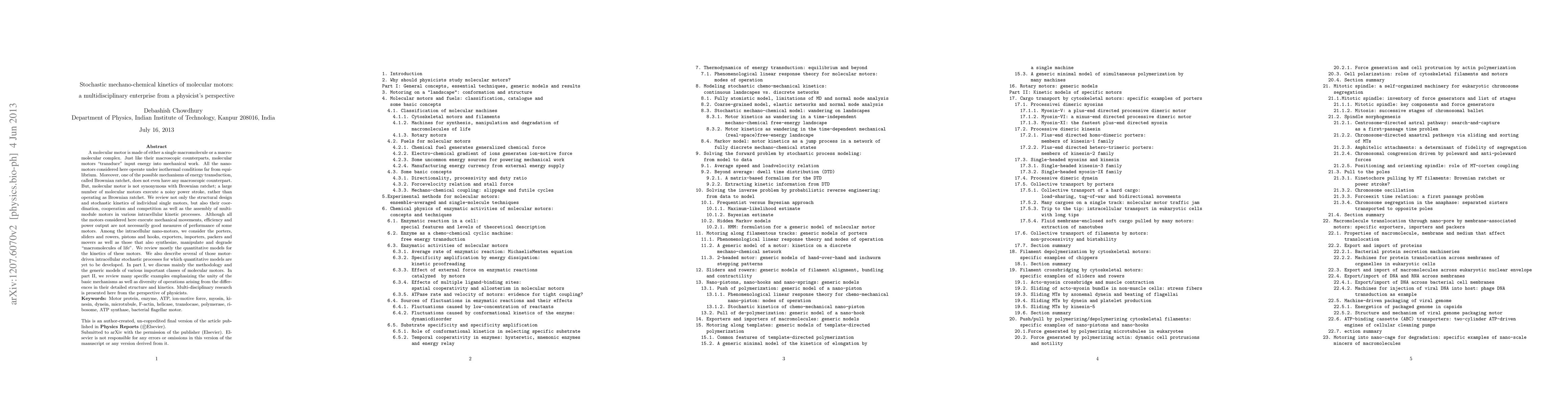 A molecular motor is made of either a single macromolecule or a macromolecular complex. Just like their macroscopic counterparts, molecular motors "transduce" input energy into mechanical work. All the nano-motors considered here operate under isothermal conditions far from equilibrium. Moreover, one of the possible mechanisms of energy transduction, called Brownian ratchet, does not even have any macroscopic counterpart. But, molecular motor is not synonymous with Brownian ratchet; a large number of molecular motors execute a noisy power stroke, rather than operating as Brownian ratchet. We review not only the structural design and stochastic kinetics of individual single motors, but also their coordination, cooperation and competition as well as the assembly of multi-module motors in various intracellular kinetic processes. Although all the motors considered here execute mechanical movements, efficiency and power output are not necessarily good measures of performance of some motors. Among the intracellular nano-motors, we consider the porters, sliders and rowers, pistons and hooks, exporters, importers, packers and movers as well as those that also synthesize, manipulate and degrade "macromolecules of life". We review mostly the quantitative models for the kinetics of these motors. We also describe several of those motor-driven intracellular stochastic processes for which quantitative models are yet to be developed. In part I, we discuss mainly the methodology and the generic models of various important classes of molecular motors. In part II, we review many specific examples emphasizing the unity of the basic mechanisms as well as diversity of operations arising from the differences in their detailed structure and kinetics. Multi-disciplinary research is presented here from the perspective of physicists.