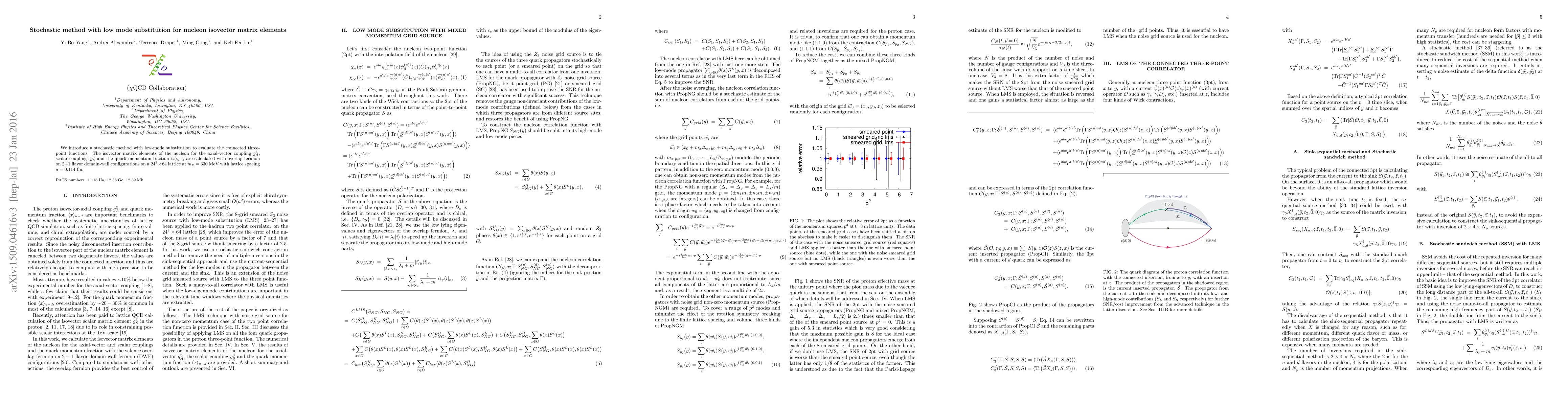 The research introduces a stochastic sandwich method with low-mode substitution (LMS) for evaluating connected three-point functions of nucleon isovector matrix elements. The method is applied to overlap fermion on 2+1 flavor domain-wall configurations on a 24³ × 64 lattice at m_π = 330 MeV with lattice spacing a = 0.114 fm.