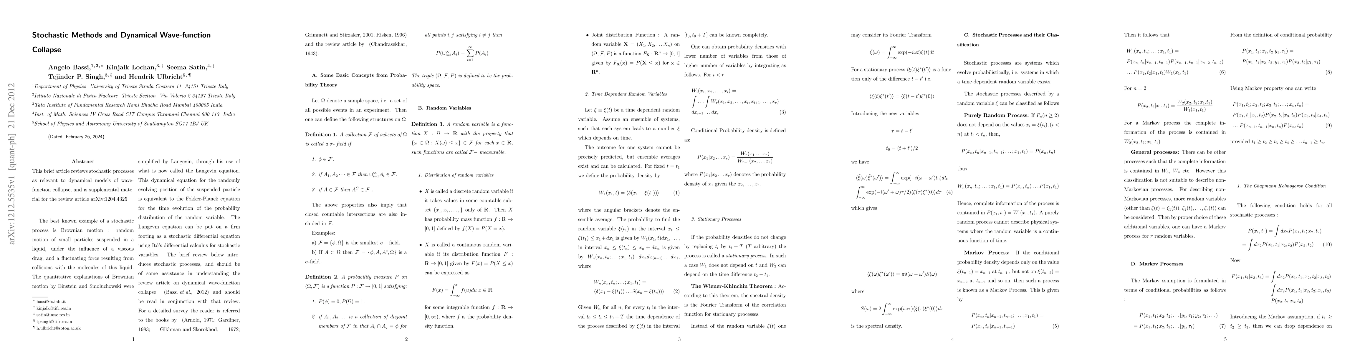 This paper reviews stochastic processes in the context of dynamical models for wave-function collapse, providing supplementary material to a broader review on the topic. It focuses on the role of randomness in quantum mechanics and its implications for collapse theories.
