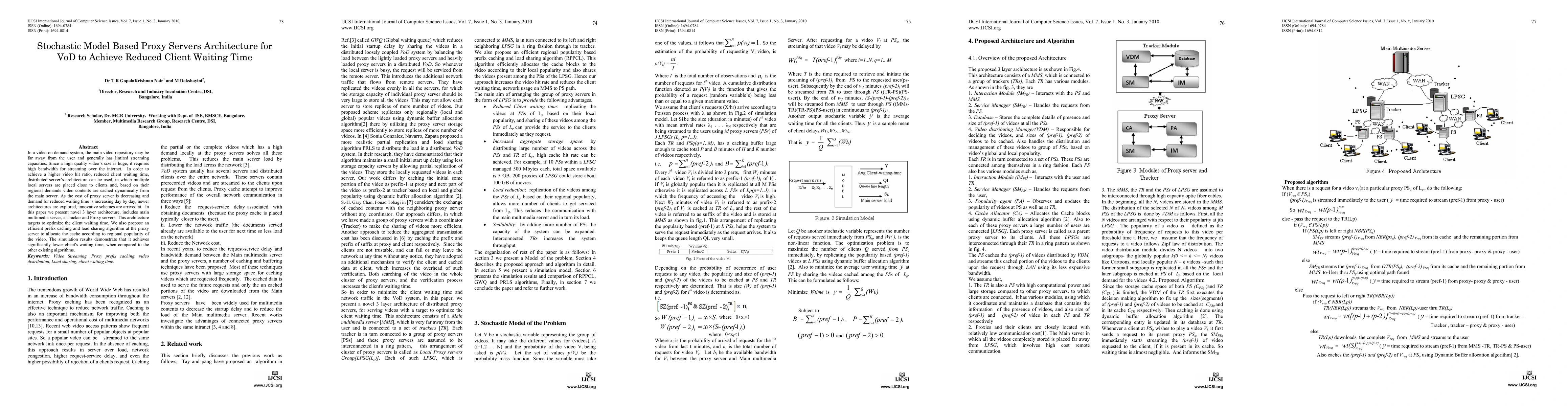 In a video on demand system, the main video repository may be far away from the user and generally has limited streaming capacities. Since a high quality video's size is huge, it requires high bandwidth for streaming over the internet. In order to achieve a higher video hit ratio, reduced client waiting time, distributed server's architecture can be used, in which multiple local servers are placed close to clients and, based on their regional demands video contents are cached dynamically from the main server. As the cost of proxy server is decreasing and demand for reduced waiting time is increasing day by day, newer architectures are explored, innovative schemes are arrived at. In this paper we present novel 3 layer architecture, includes main multimedia server, a Tracker and Proxy servers. This architecture targets to optimize the client waiting time. We also propose an efficient prefix caching and load sharing algorithm at the proxy server to allocate the cache according to regional popularity of the video. The simulation results demonstrate that it achieves significantly lower client's waiting time, when compared to the other existing algorithms.