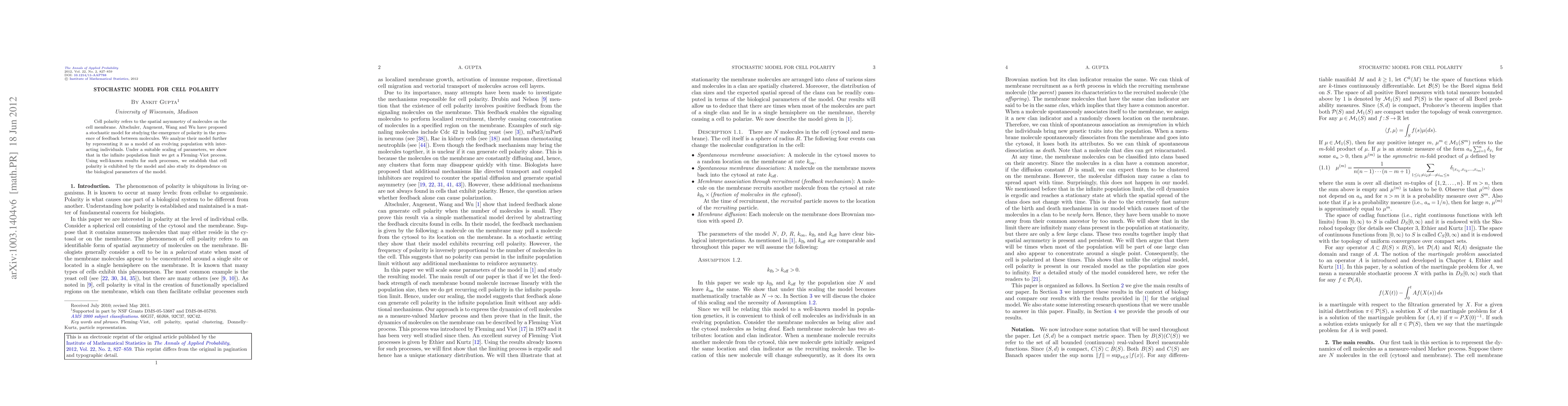 Researchers analyzed a stochastic model for cell polarity, showing that it exhibits spatial asymmetry in the presence of feedback between molecules. The study provides insights into the emergence of polarity and its dependence on biological parameters.