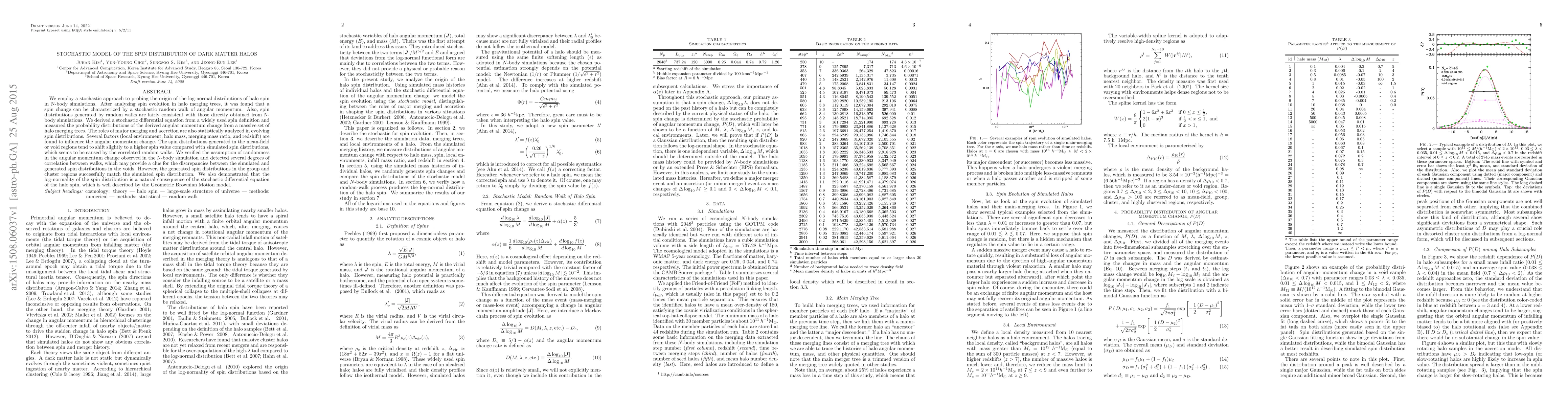 We employ a stochastic approach to probing the origin of the log-normal distributions of halo spin in N-body simulations. After analyzing spin evolution in halo merging trees, it was found that a spin change can be characterized by a stochastic random walk of angular momentum. Also, spin distributions generated by random walks are fairly consistent with those directly obtained from N-body simulations. We derived a stochastic differential equation from a widely used spin definition and measured the probability distributions of the derived angular momentum change from a massive set of halo merging trees. The roles of major merging and accretion are also statistically analyzed in evolving spin distributions. Several factors (local environment, halo mass, merging mass ratio, and redshift) are found to influence the angular momentum change. The spin distributions generated in the mean-field or void regions tend to shift slightly to a higher spin value compared with simulated spin distributions, which seems to be caused by the correlated random walks. We verified the assumption of randomness in the angular momentum change observed in the N-body simulation and detected several degrees of correlation between walks, which may provide a clue for the discrepancies between the simulated and generated spin distributions in the voids. However, the generated spin distributions in the group and cluster regions successfully match the simulated spin distribution. We also demonstrated that the log-normality of the spin distribution is a natural consequence of the stochastic differential equation of the halo spin, which is well described by the Geometric Brownian Motion model.