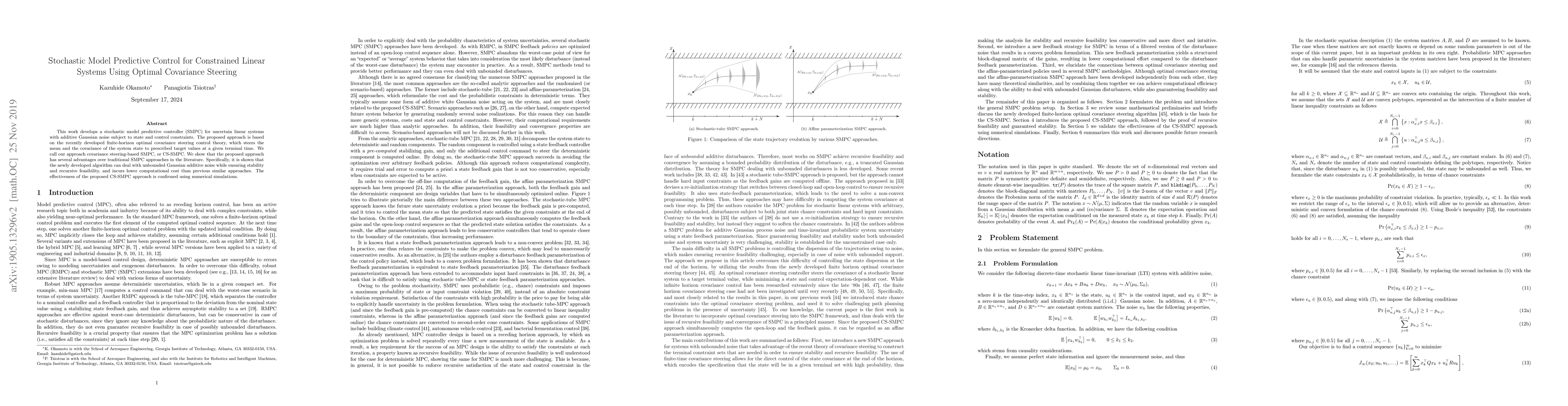 The paper presents a covariance steering-based SMPC (CS-SMPC) approach that converts the original stochastic optimal control problem at each iteration of the MPC algorithm into a deterministic convex programming problem.
